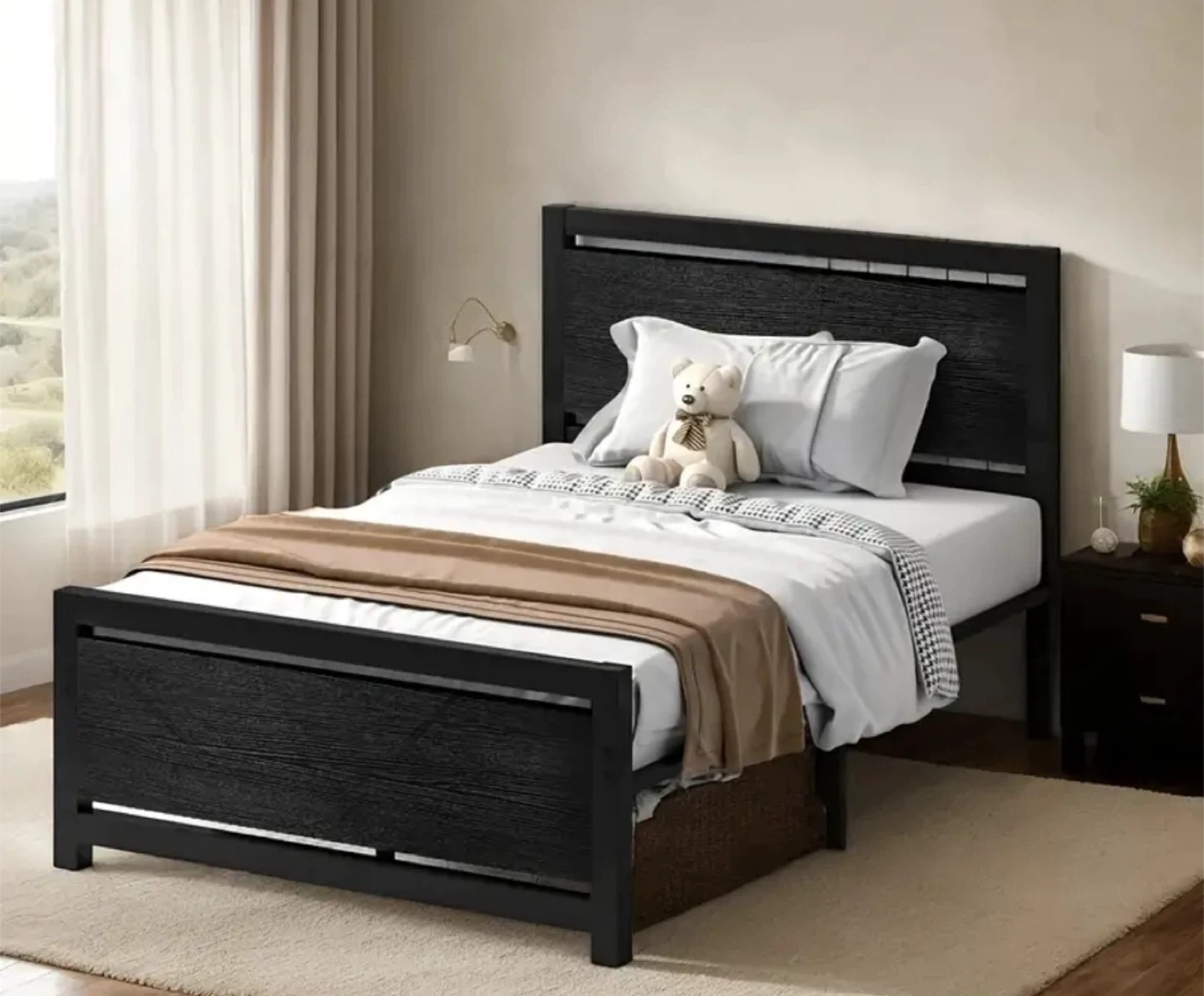 Black Wood Twin Bed Frame