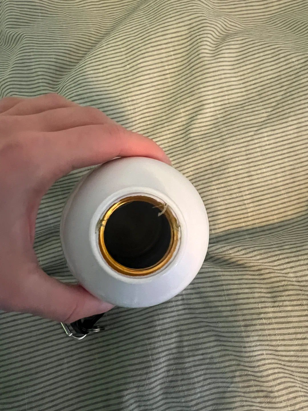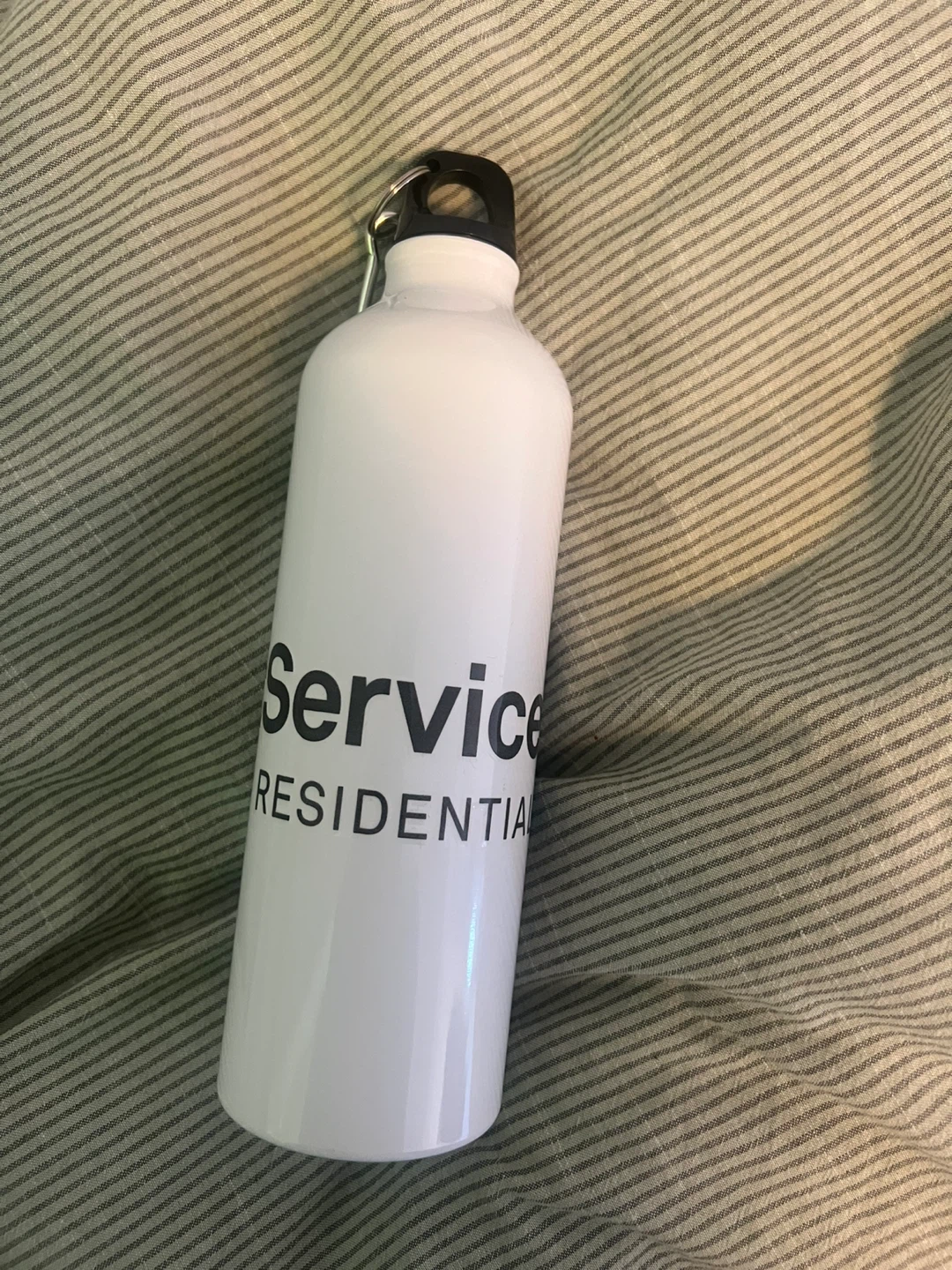 Selling a white water bottle.