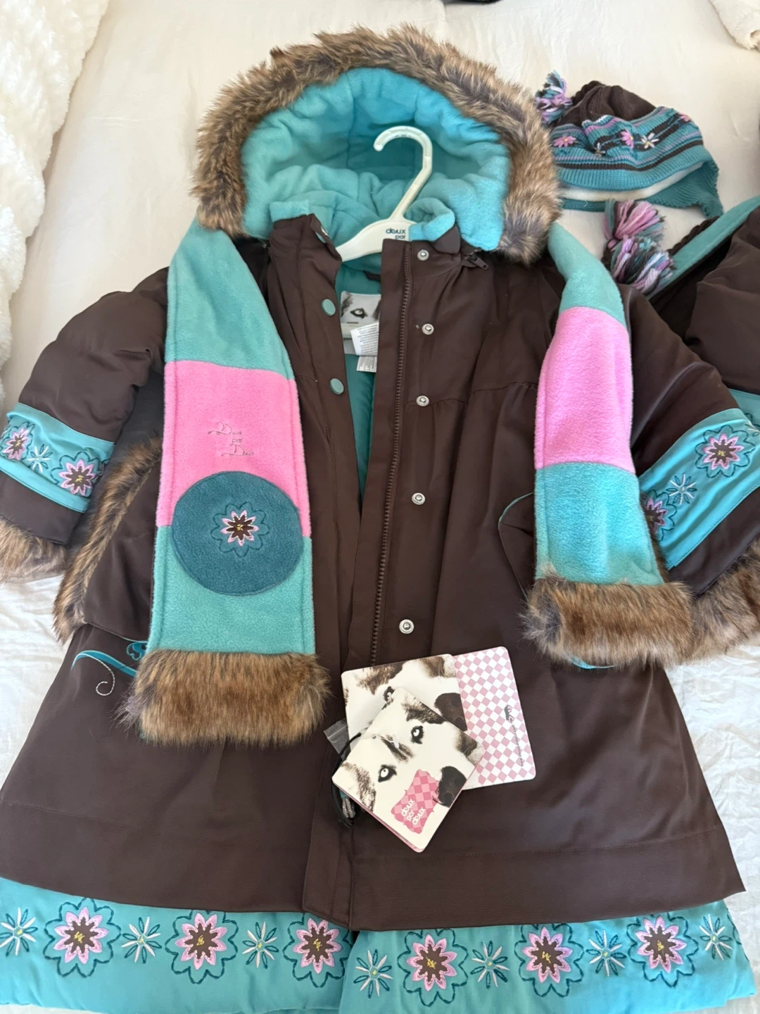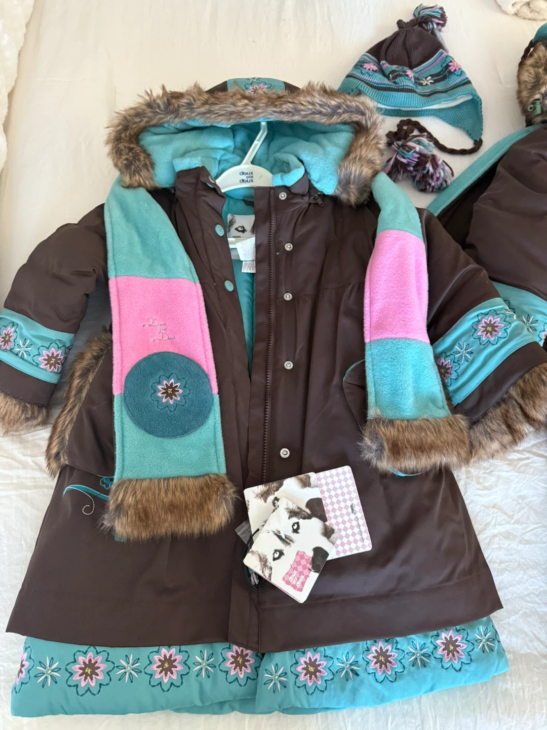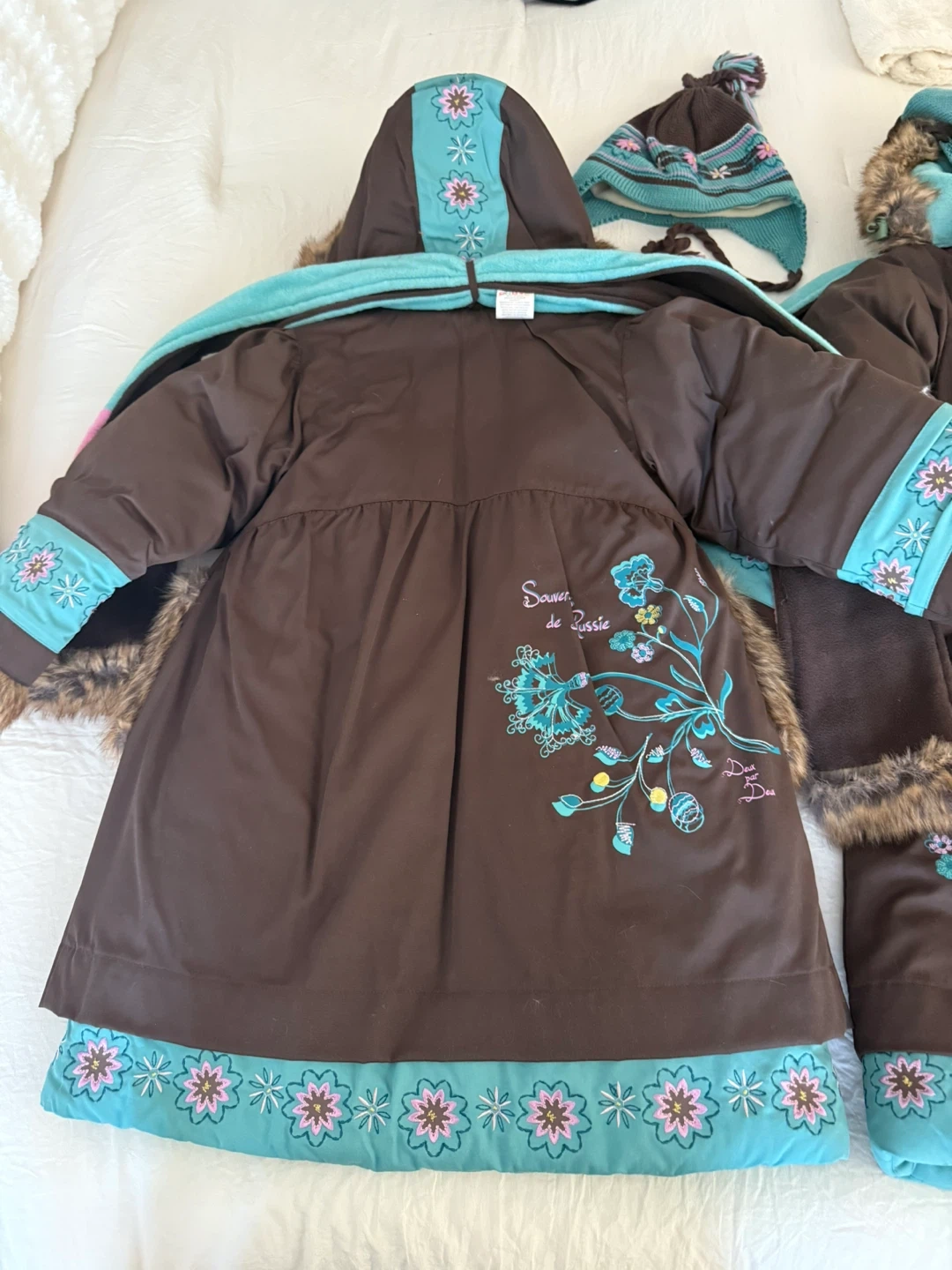 Selling 2 Deux par Deux girls' winter outfit. It includes a coat, hat, and scarf, perfect for keeping your little one warm and stylish during the colder months. The set features a beautiful floral design and faux fur trim. They are brand new with tags and ready for a new owner! Size 5 and Size 6x