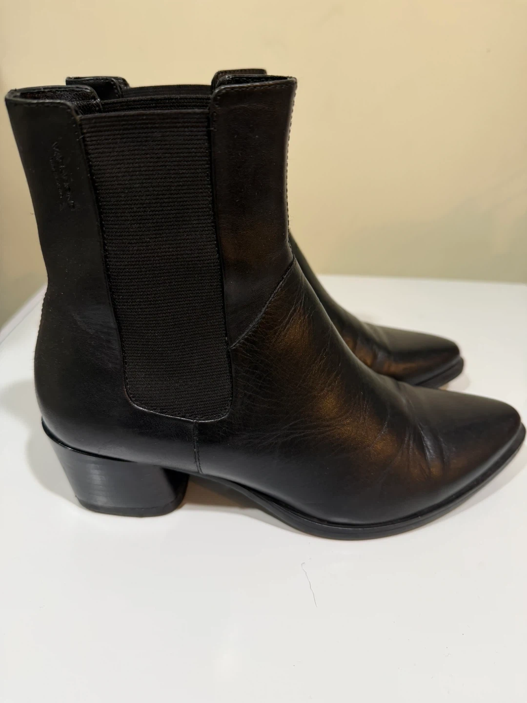 Selling a pair of Vagabond Chelsea boots in black leather. These are a stylish and versatile addition to any wardrobe! They show some signs of wear, but are still in good condition for everyday use.
