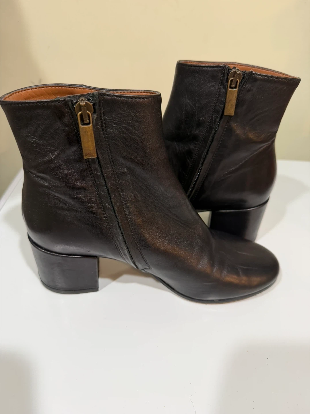 Selling a pair of black leather ankle boots “gravity pope”. They have a stylish and classic design with a comfortable heel height. Perfect for adding a touch of sophistication to any outfit!