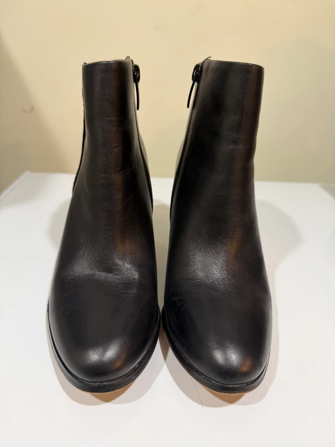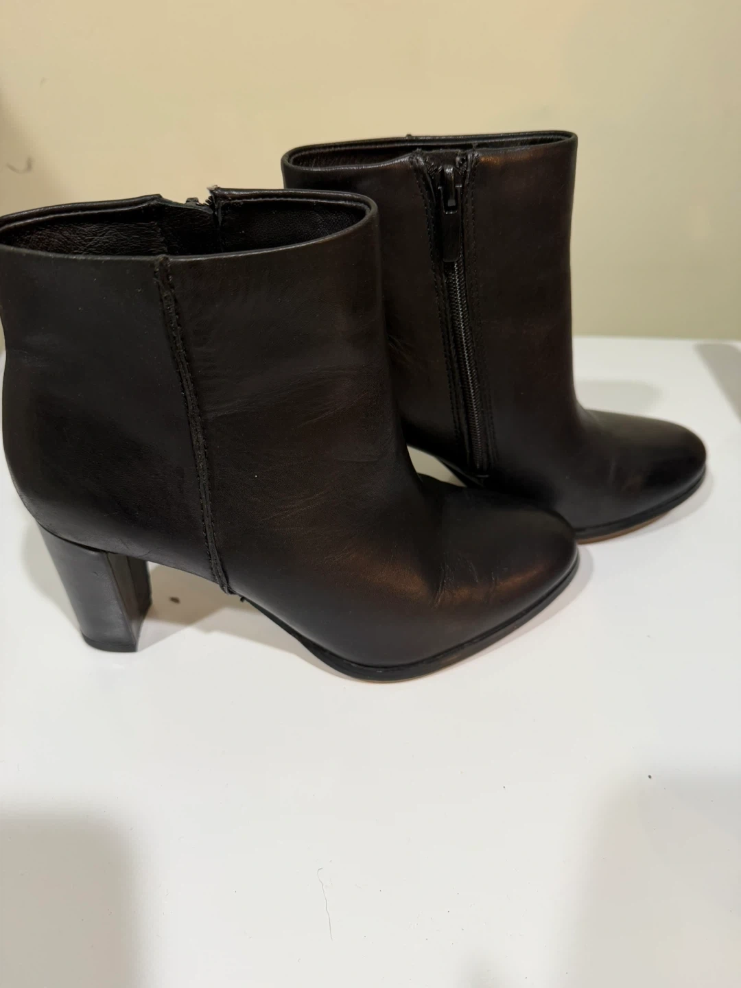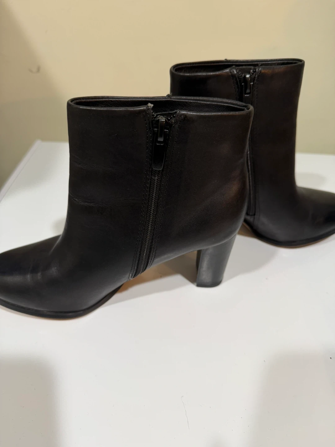 Selling a pair of stylish Clarks black leather ankle boots! They're in great condition and ready for a new home. Perfect for adding a touch of sophistication to any outfit. These boots are a versatile addition to your wardrobe!