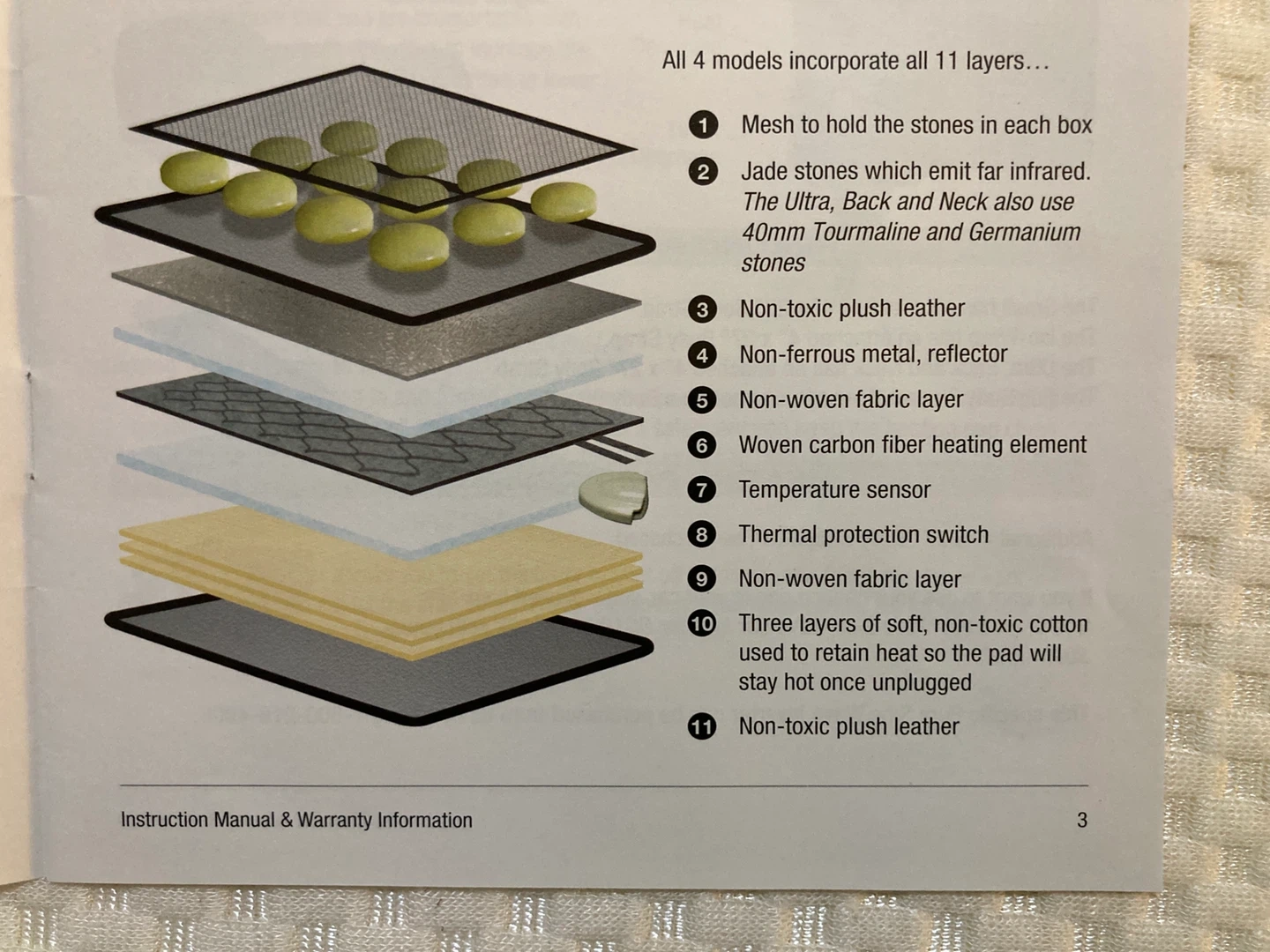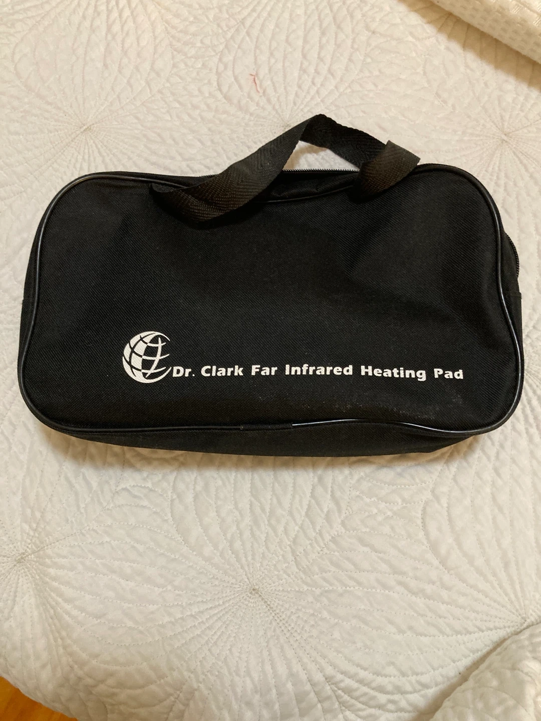 I'm selling a Dr. Clark Far Infrared Heating Pad! It comes with its original bag. The pad features jade stones that emit infrared, along with layers of non-toxic plush leather, non-ferrous metal reflector, and woven carbon fiber heating element. It also has a digital controller to adjust the heat and timer