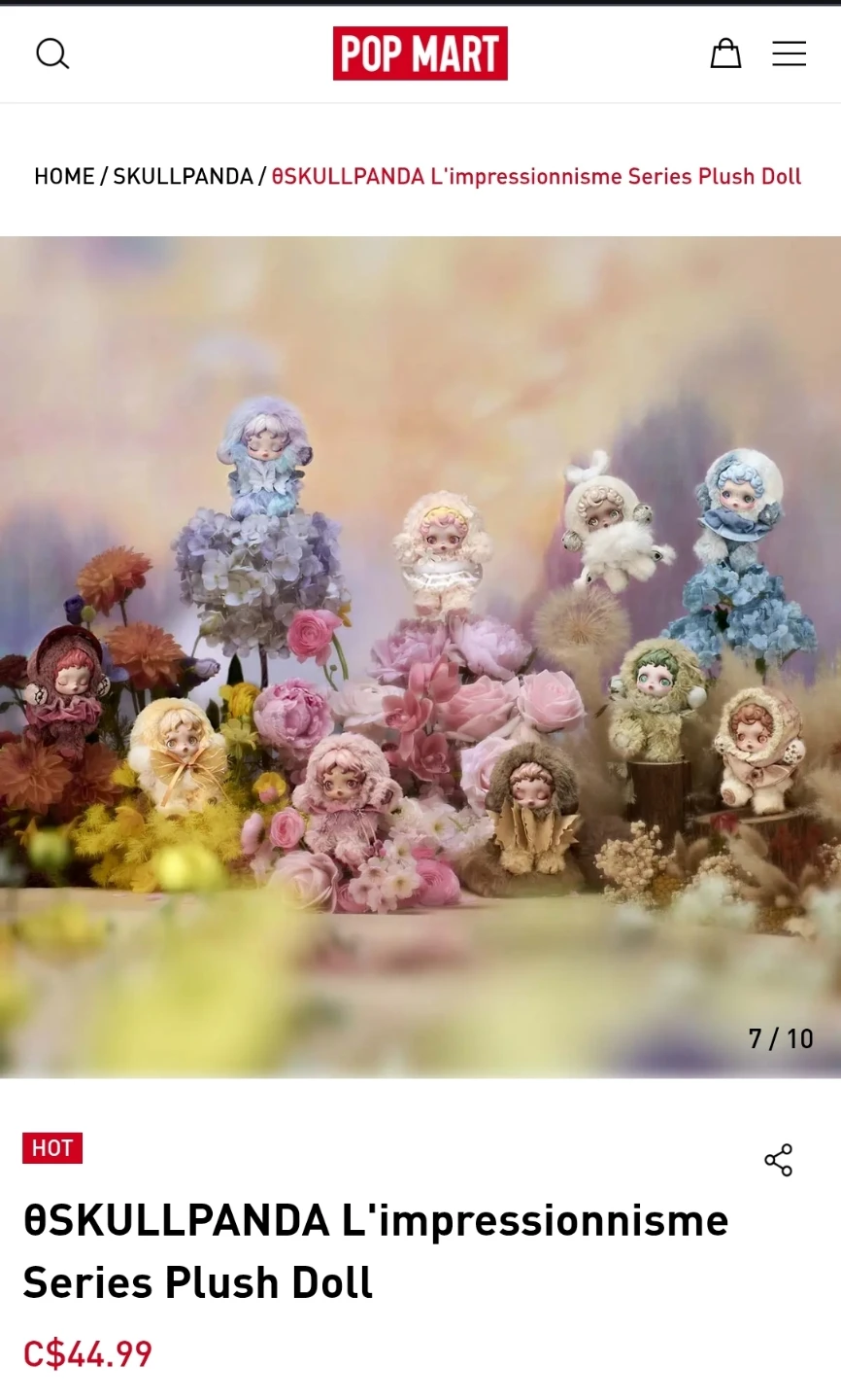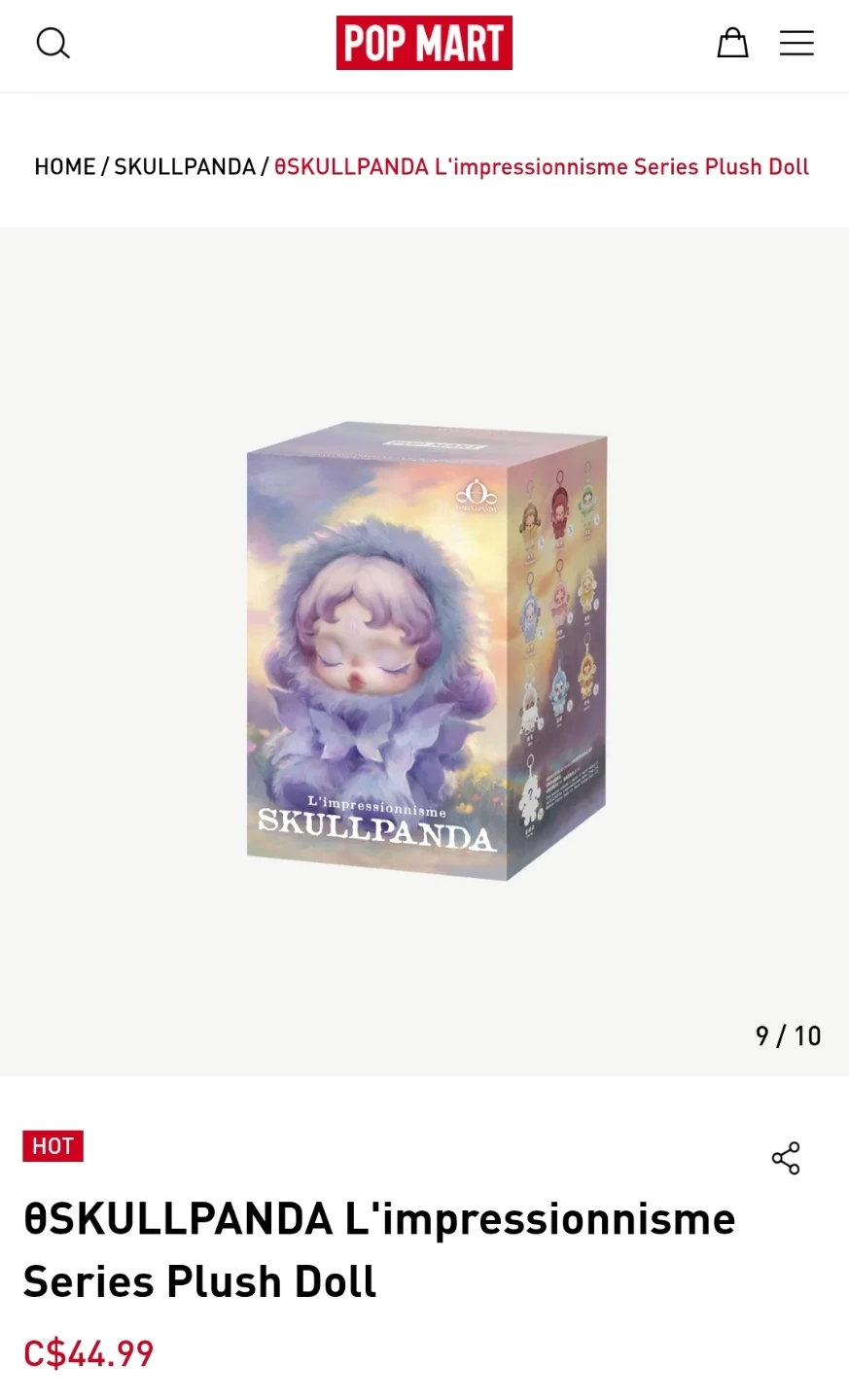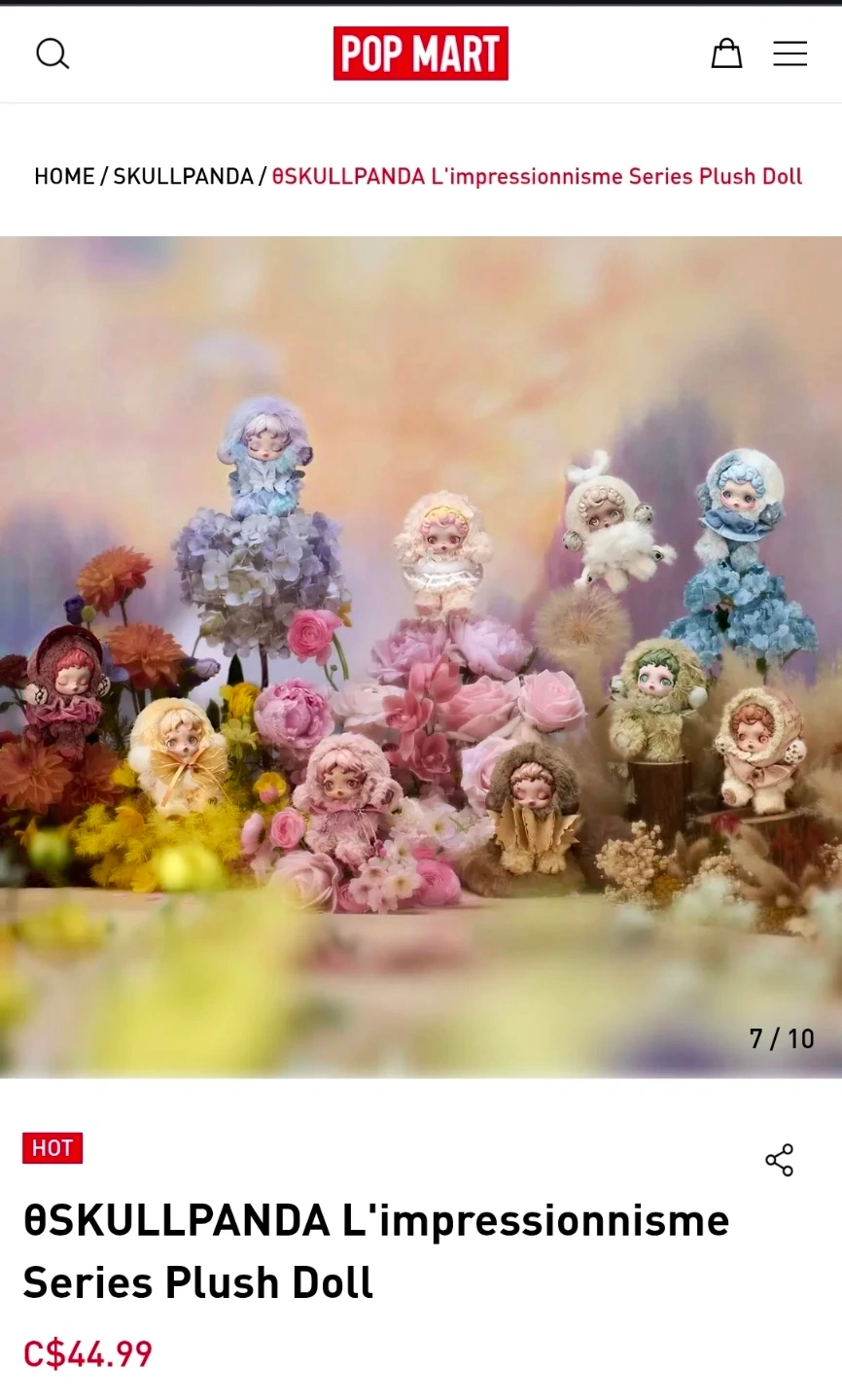 Retails for $44.99 plus shipping https://m.popmart.com/ca/products/3031/%CE%B8SKULLPANDA-L'impressionnisme-Series-Plush-Doll