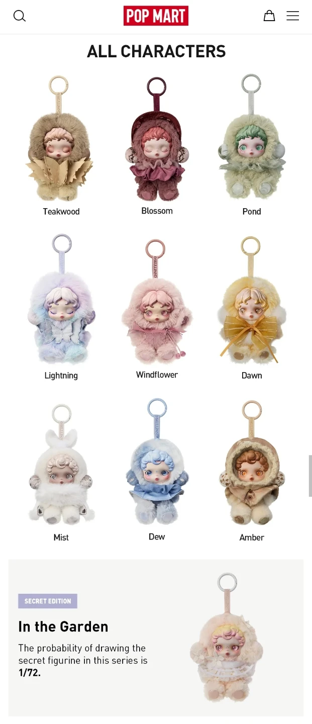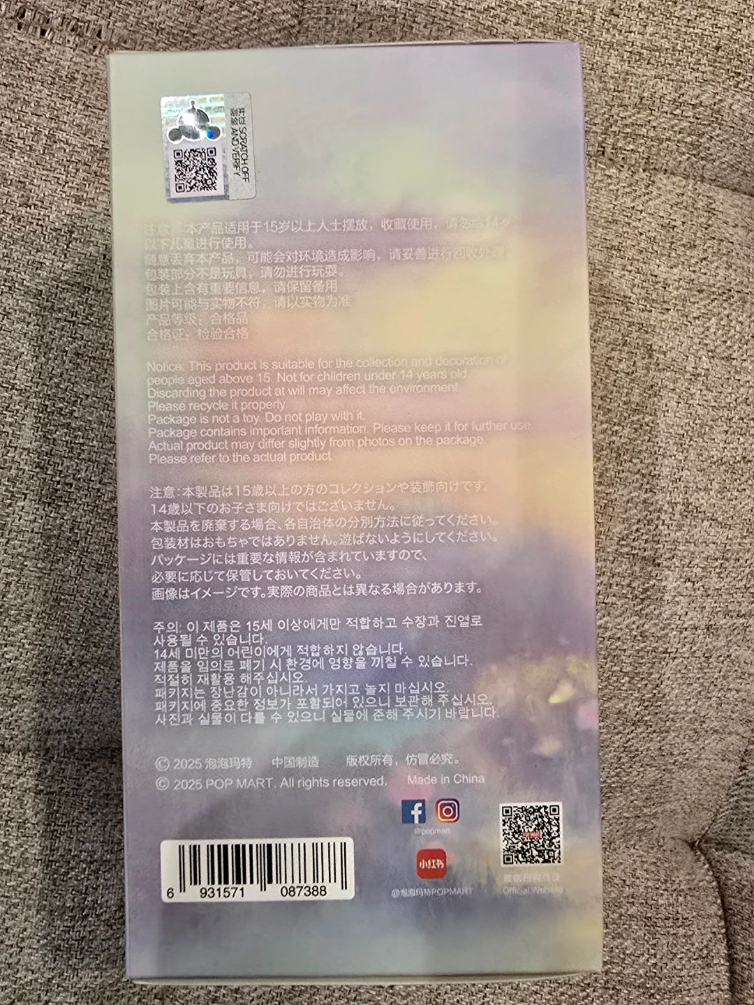AUTHENTIC purchased from Pop Mart. Unopened blind box -- aka no idea which plush doll is inside. These beautiful plushies come in its original box. Perfect for collectors or anyone who loves limited and unique items.