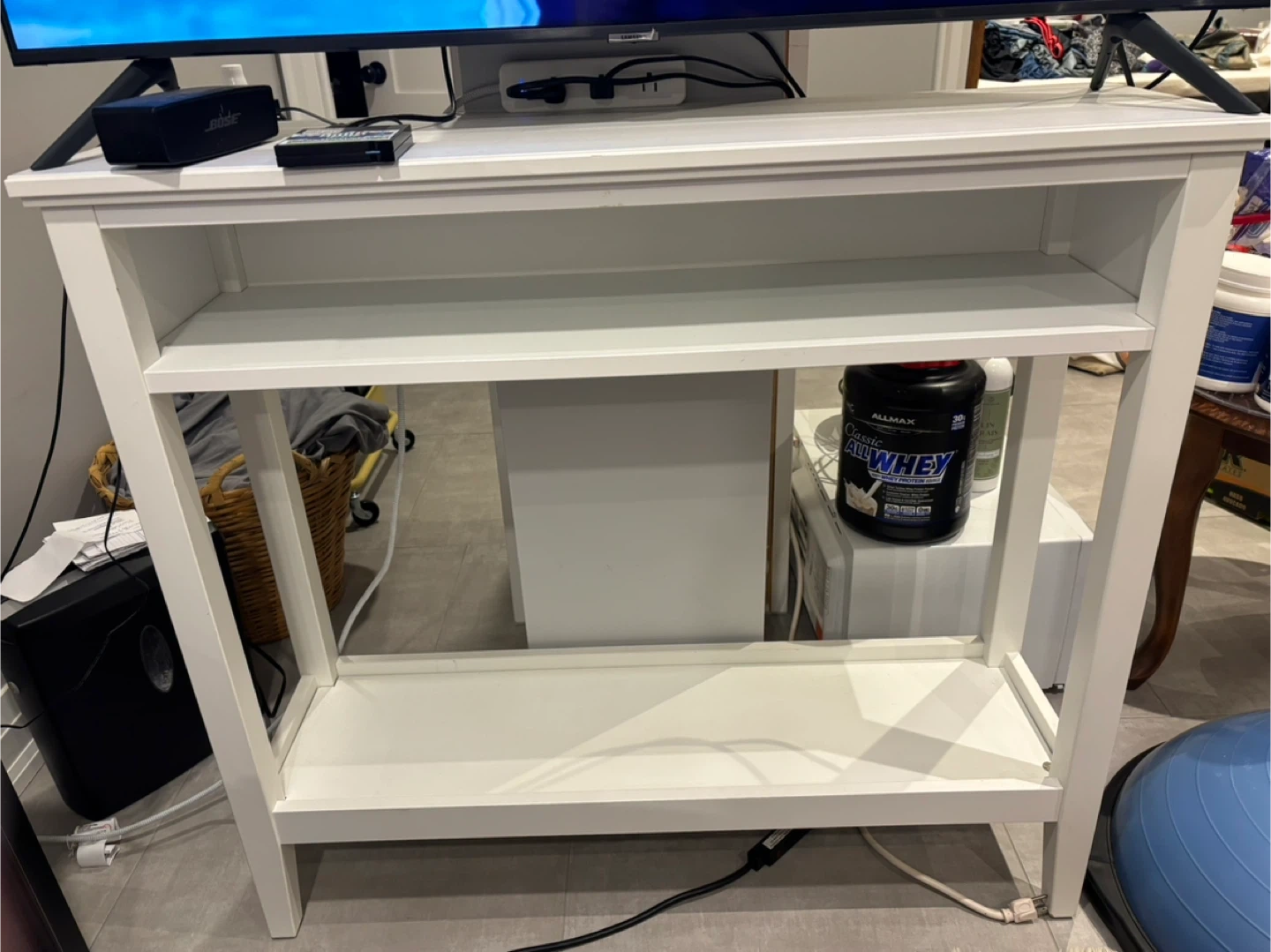 Selling IKEA white console with open shelf. It has a clean and modern look. perfect for a TV stand or hallway or living room.