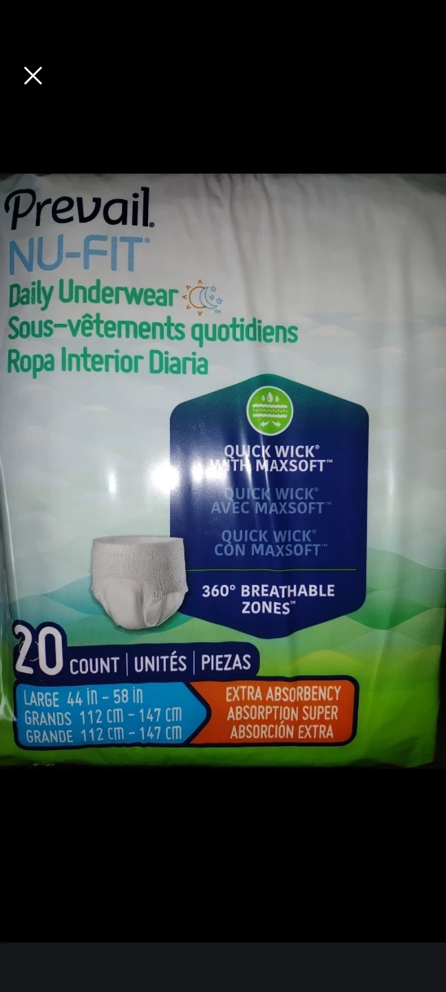 #Gifting a pack of Prevail NU-FIT Daily Underwear. This is a pack of 20, size large (44-58 inches). They feature Quick Wick with Maxsoft and 360° Breathable Zones for extra absorbency.