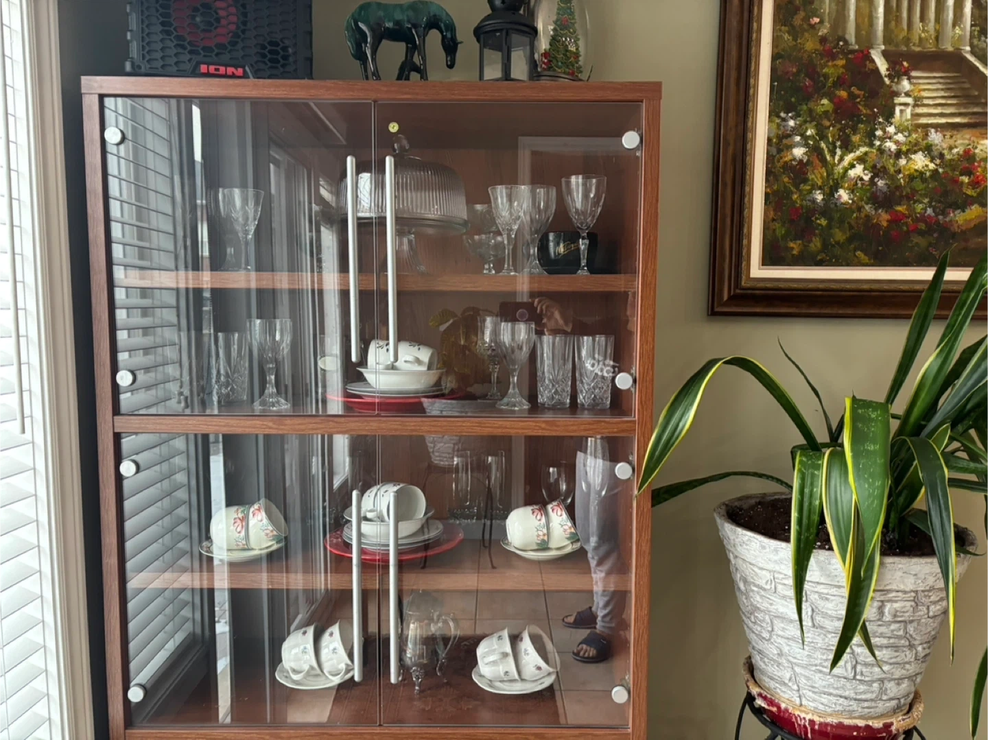 MOVING SALE: Glass Display Cabinet - Brown & Black