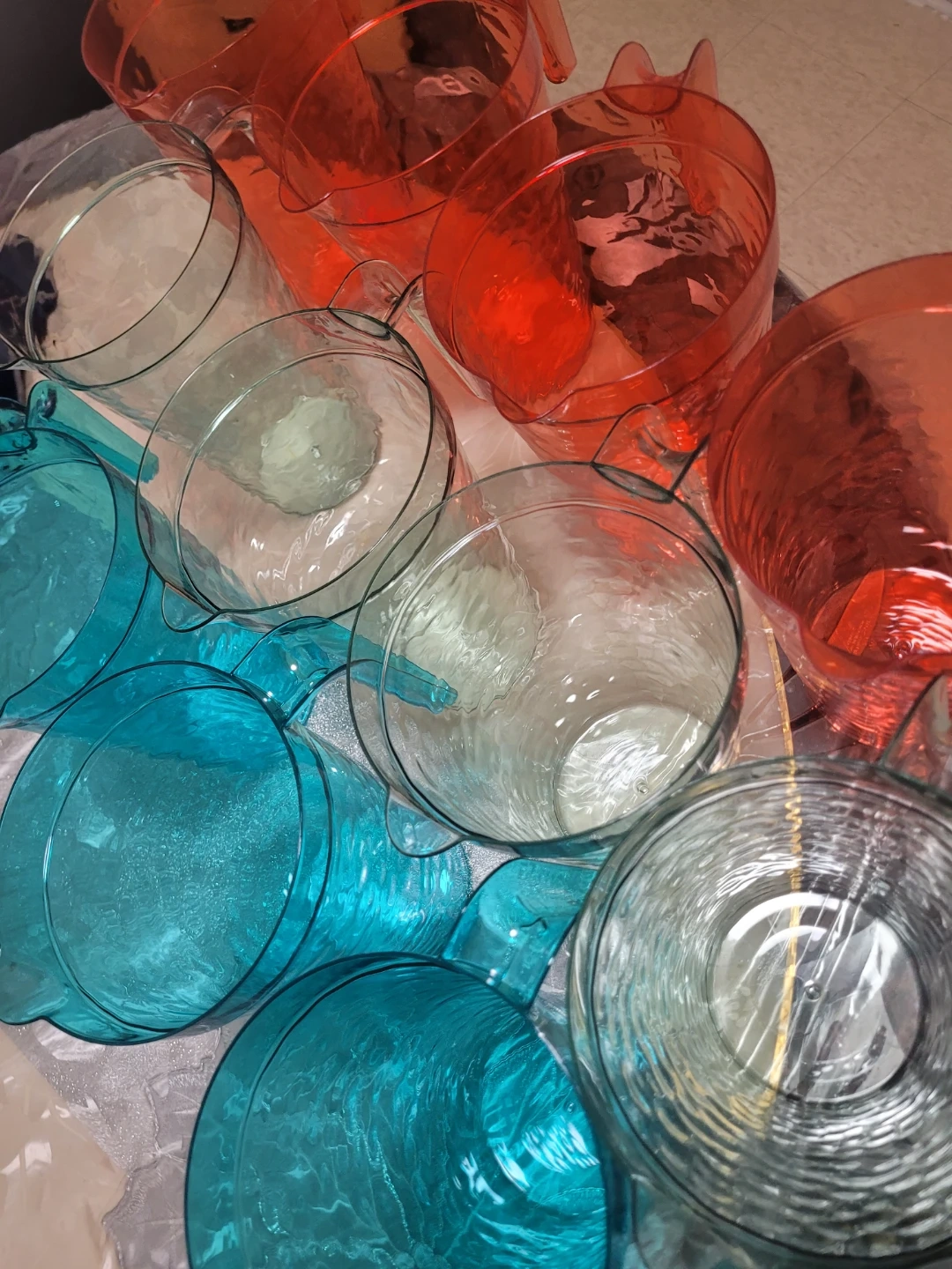 Plastic Pitchers - Blue, Clear, Orange