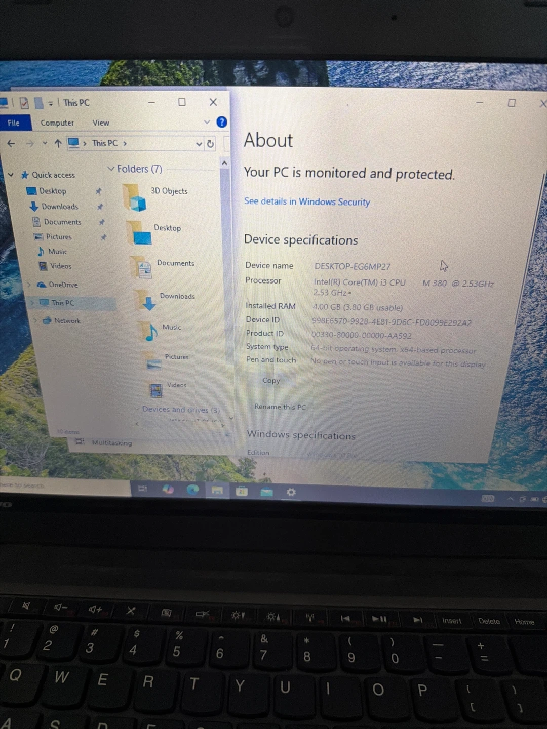 • Processor: Intel Core i3 M380 @ 2.53GHz