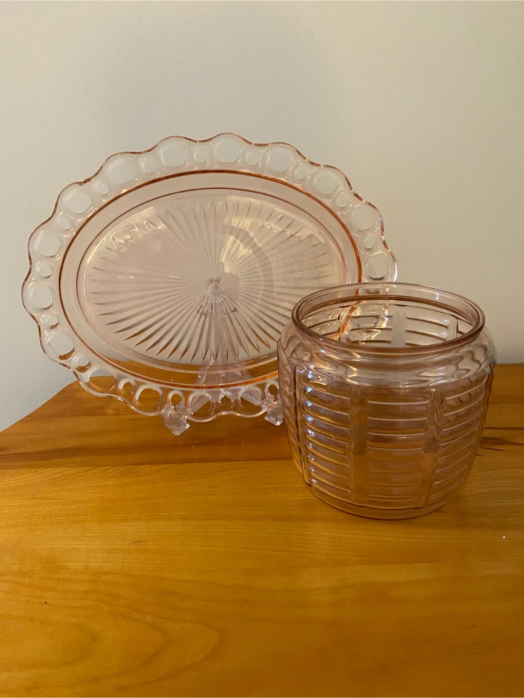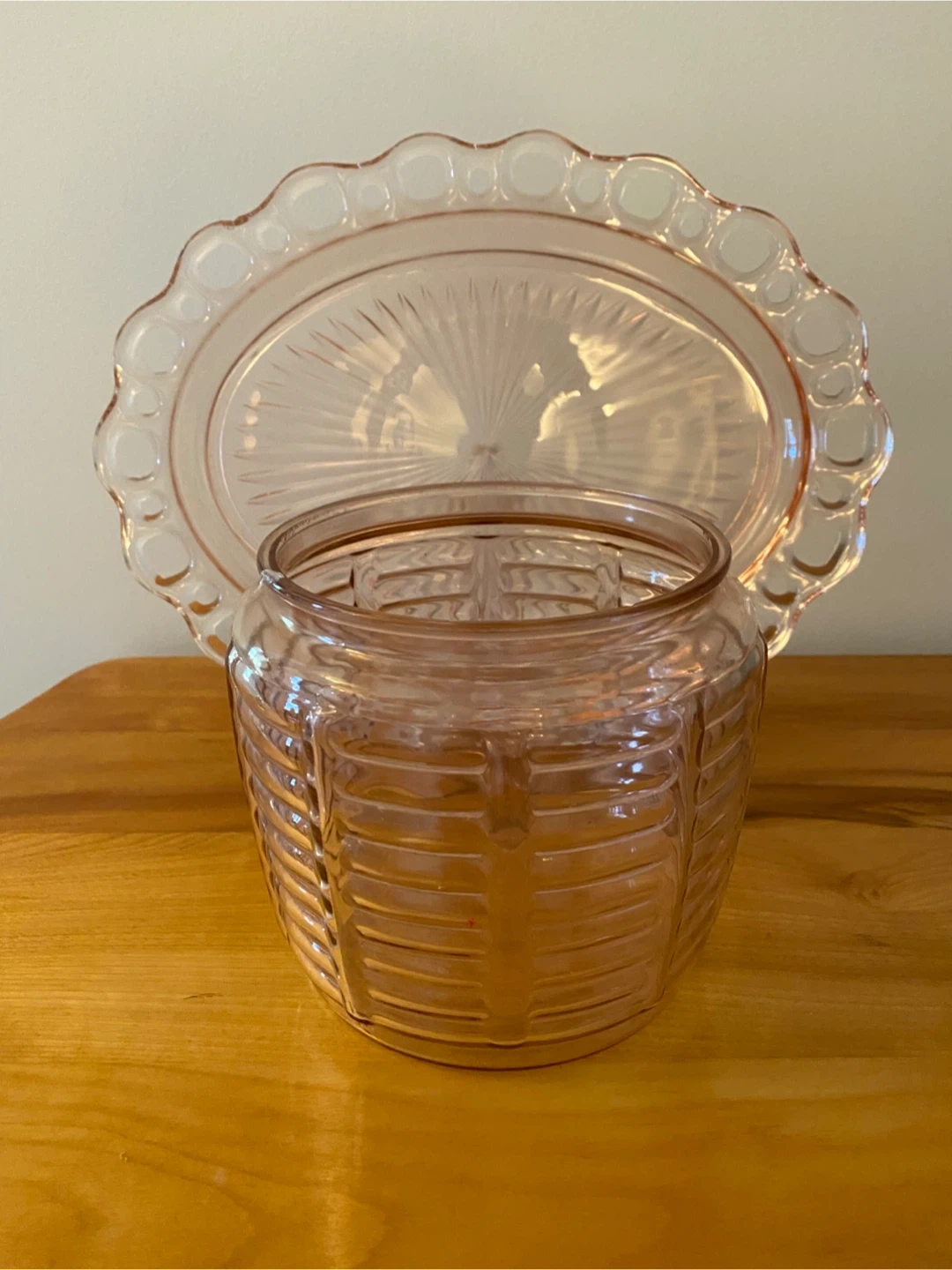 Vintage Pink Depression Glass Jar & Plate