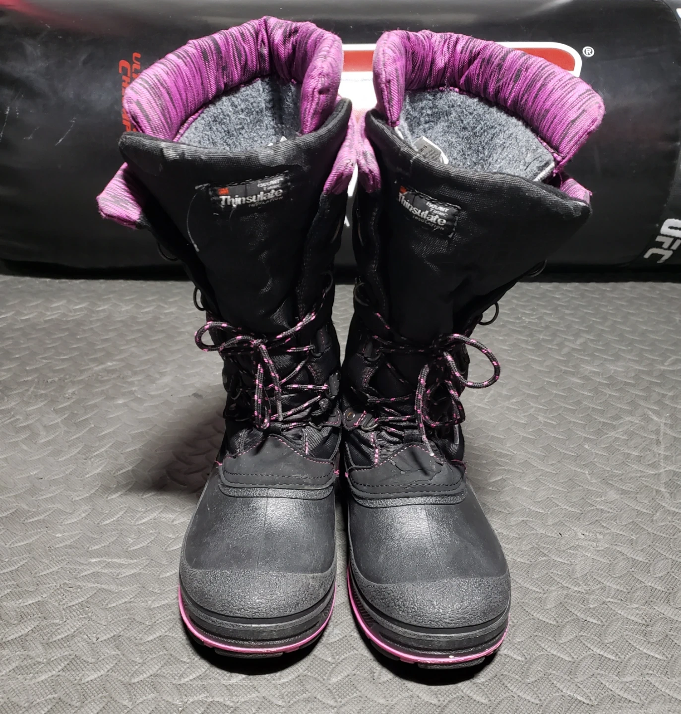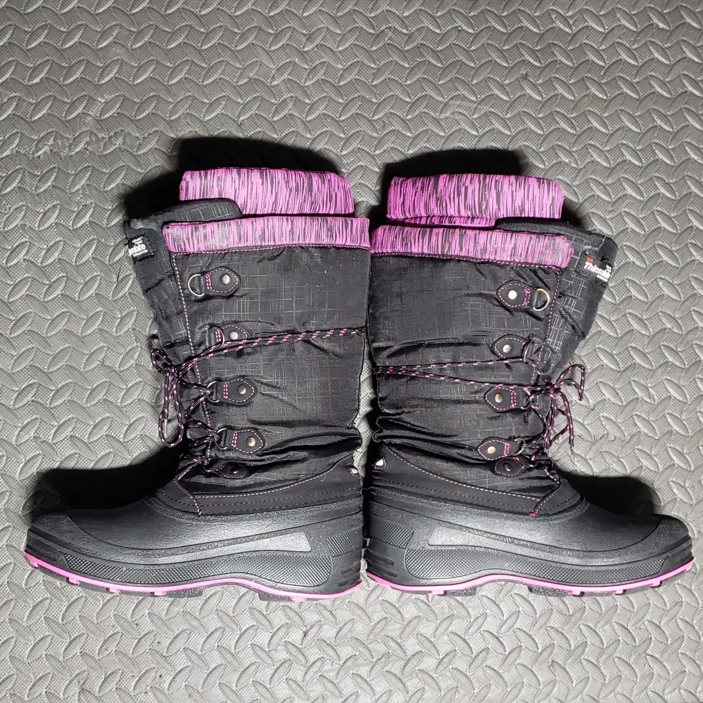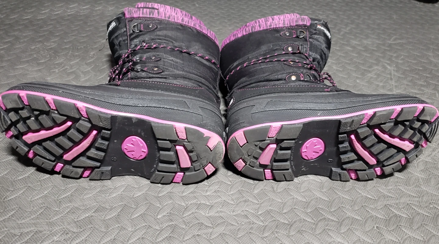 They are black with pink accents and have a Thinsulate lining with some very minor wear.