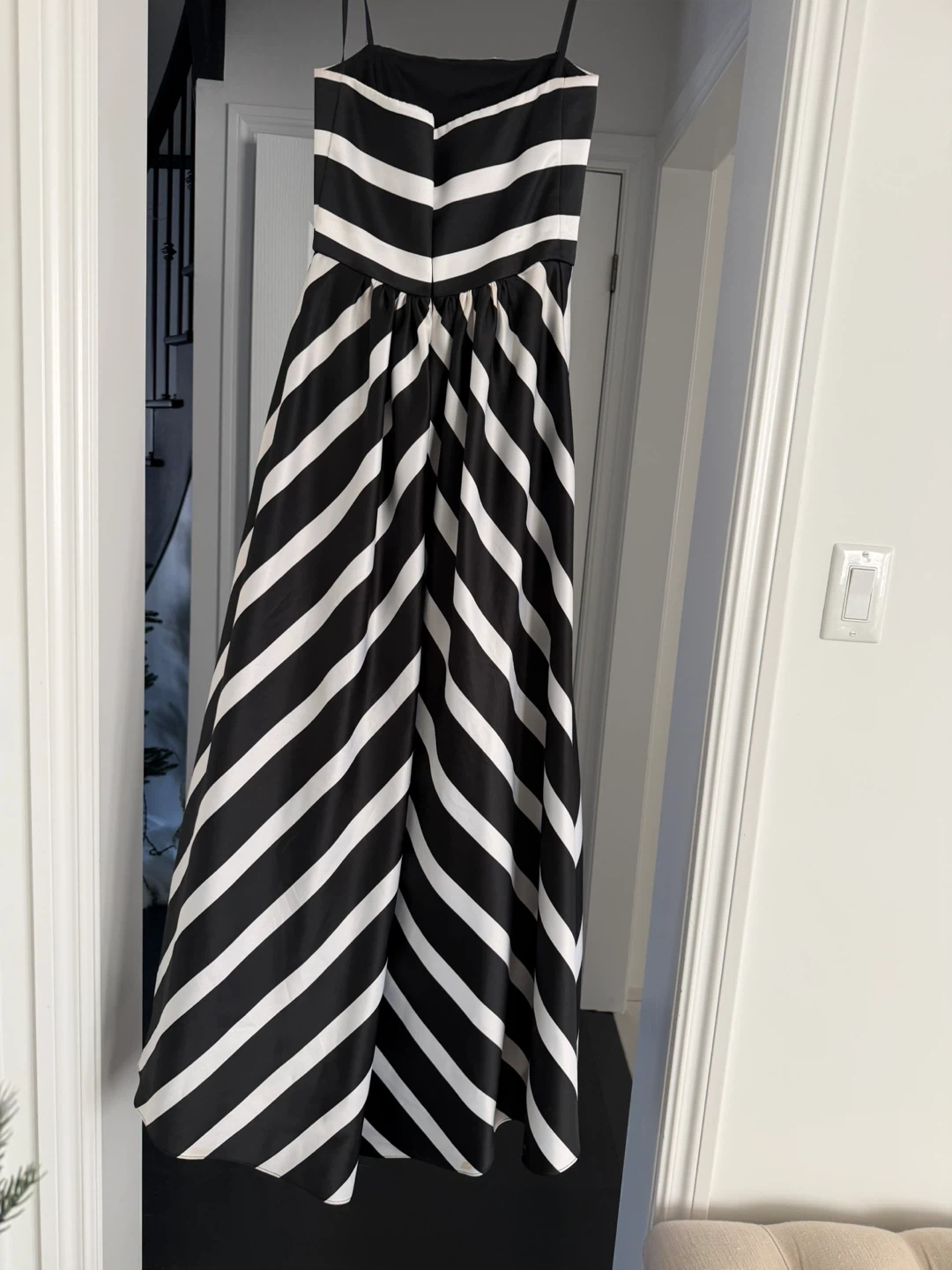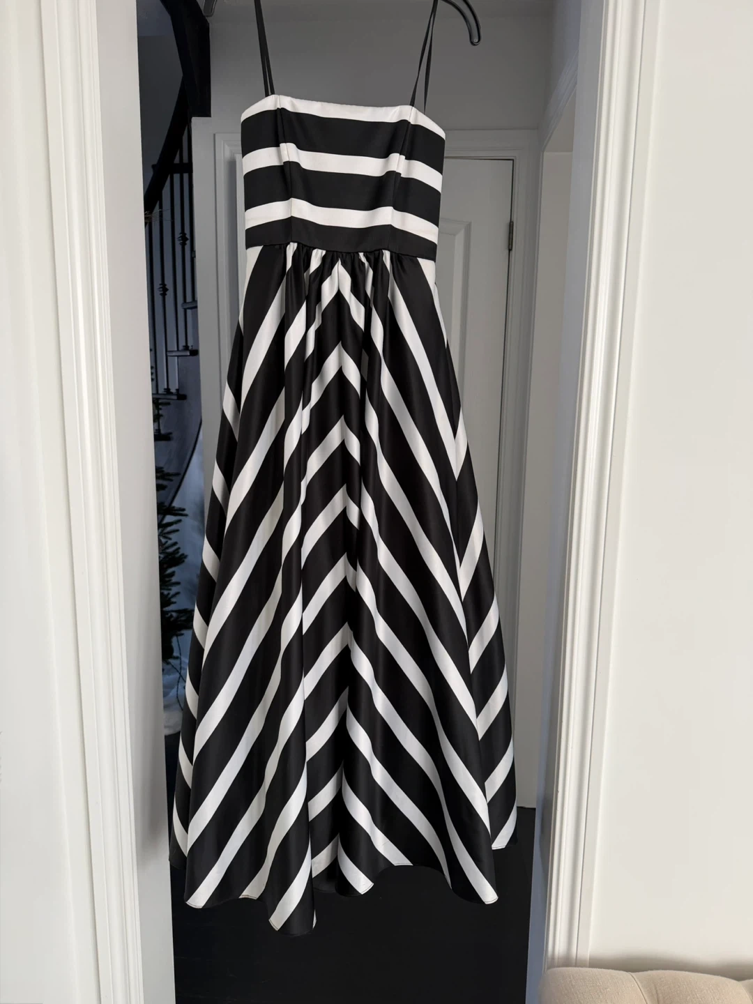 Selling a Laura Petites dress in a striking black and white striped pattern! The dress is a size 2P and features a classic design. Perfect for various occasions, this dress is sure to make a statement