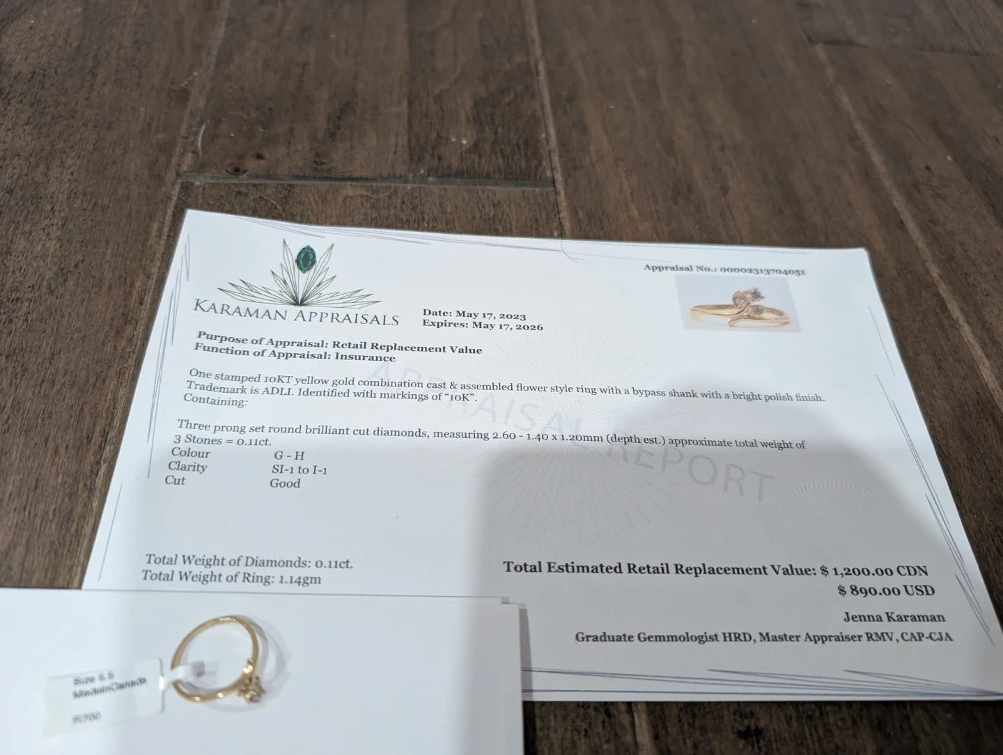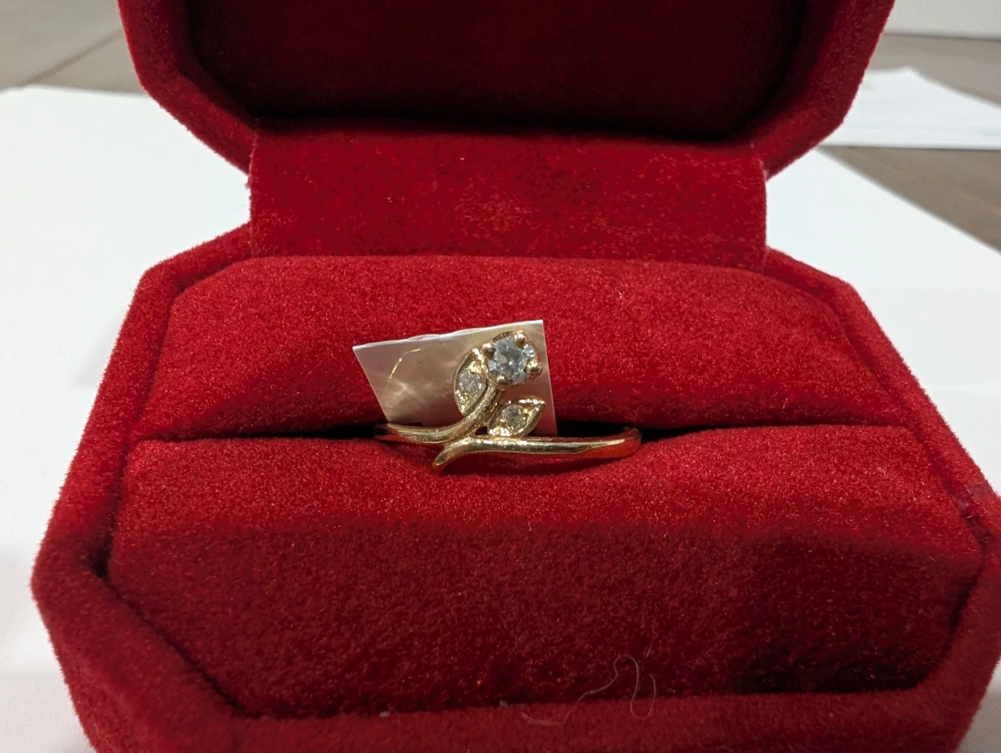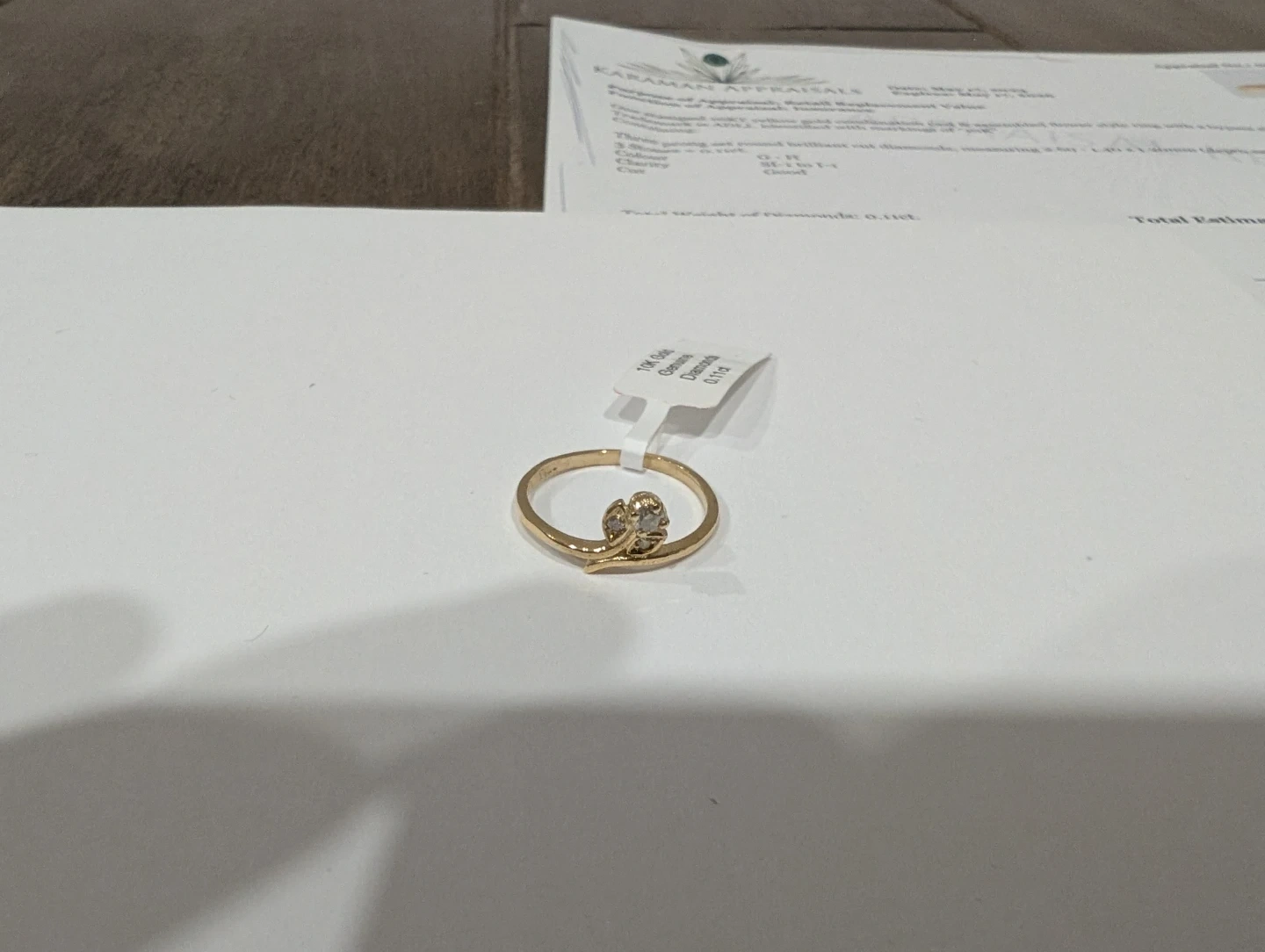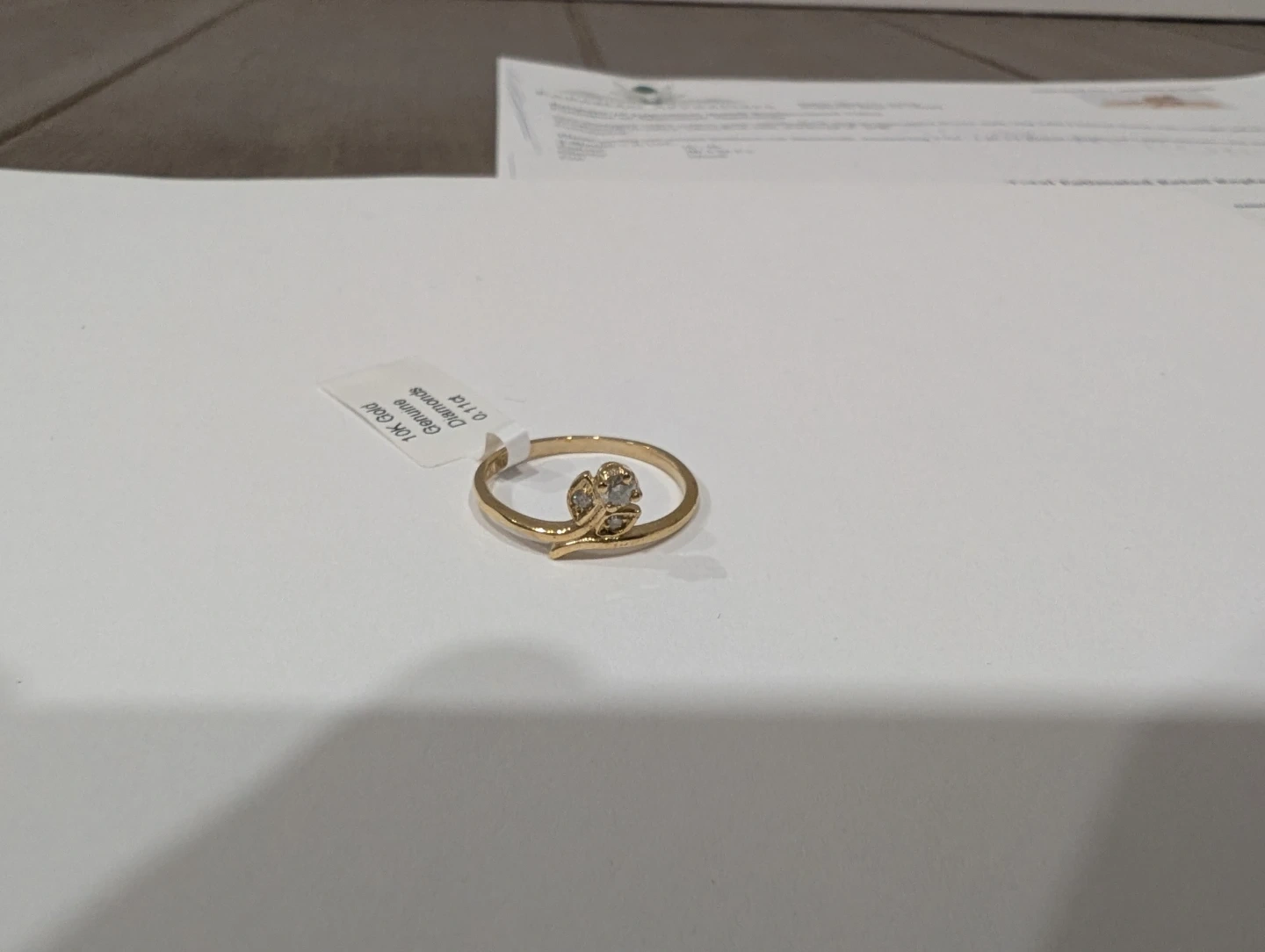 Brand new 10kt yellow gold natural genuine diamond ring for sale. Three prong set round brilliant cut natural genuine diamond, 0.11ct carats. Ring size 5.5, made in Canada. Retail value $1200, selling for $300 FIRM. Comes with appraisal.