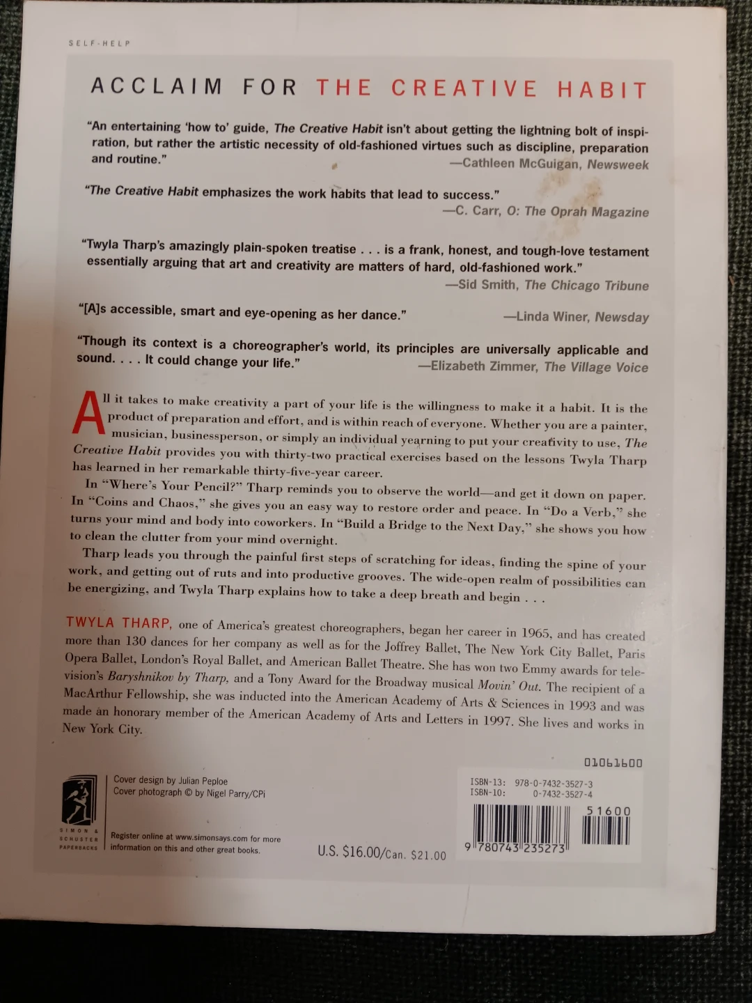 Selling The Creative Habit by Twyla Tharp! It's a practical guide to learn it and use it for life. This book provides you with thirty-two practical exercises based on the lessons Twyla Tharp has learned in her remarkable thirty-five-year career. Great for anyone looking to boost their creativity!