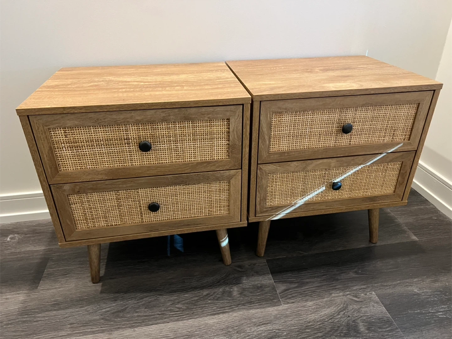 Selling a set of two rattan nightstands. They're in good condition and would look great in any bedroom!
