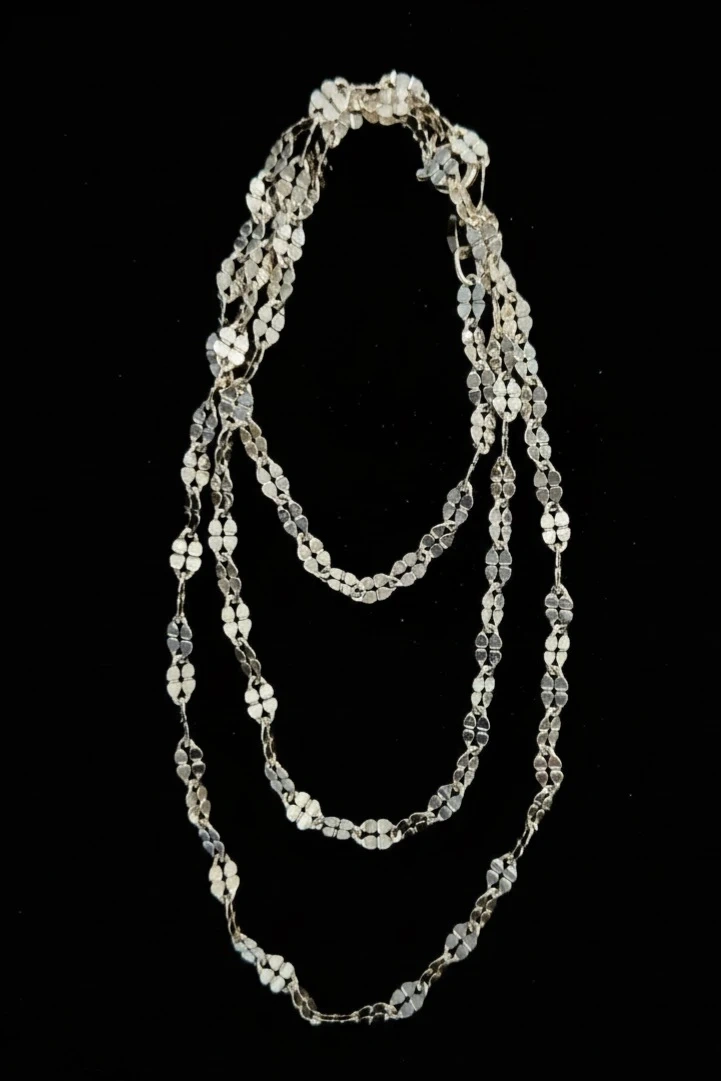 This is a lovely silver-tone multi-strand necklace. It would make a wonderful addition to any jewelry collection!
