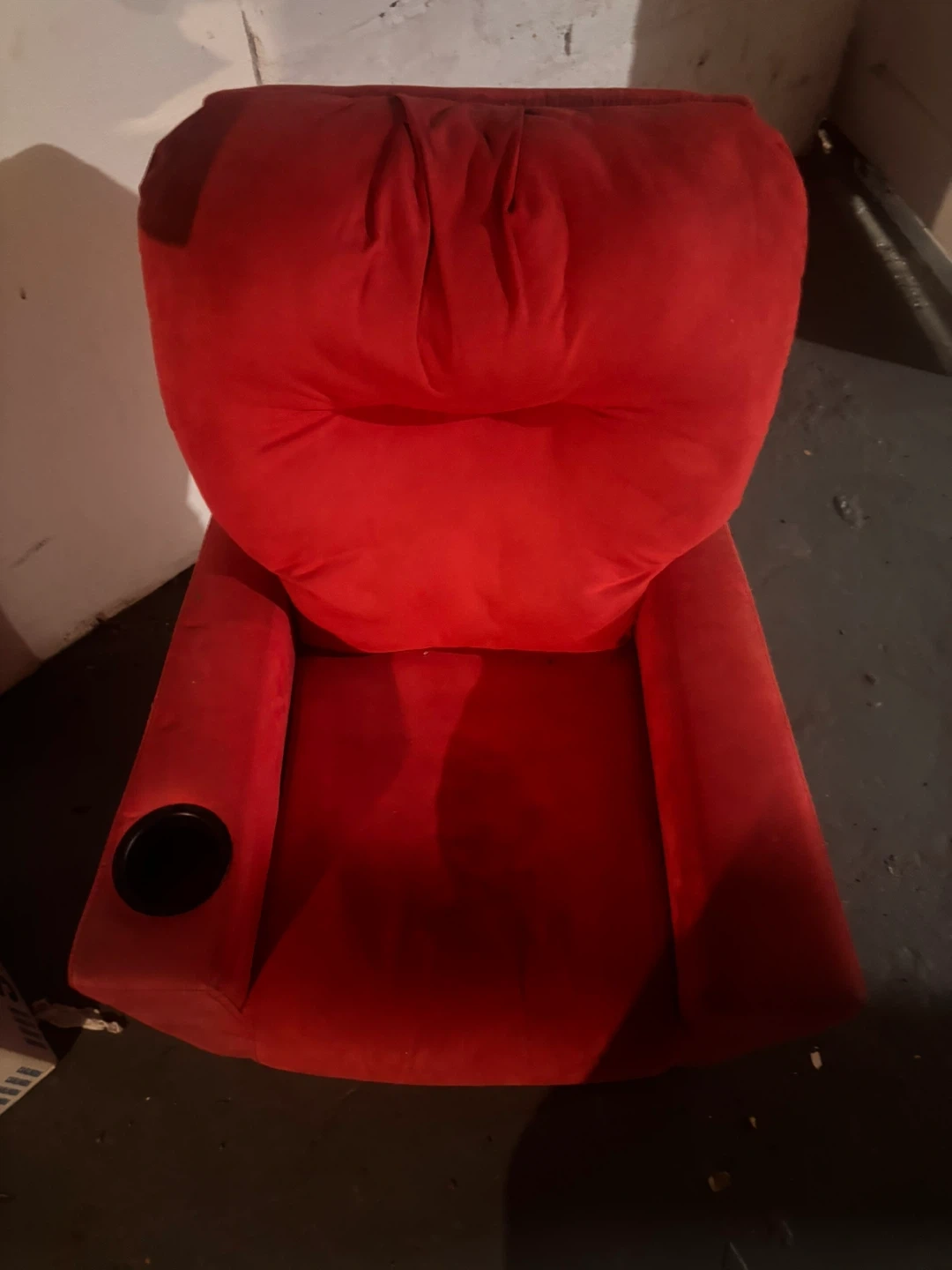 Selling a Flash Furniture Chandler Microfiber Kids Recliner in red! It has a cup holder and supports up to 90 lbs. The seat depth is 12 inches, and the static weight capacity is 90 lbs. It's a comfy and safe recliner for kids