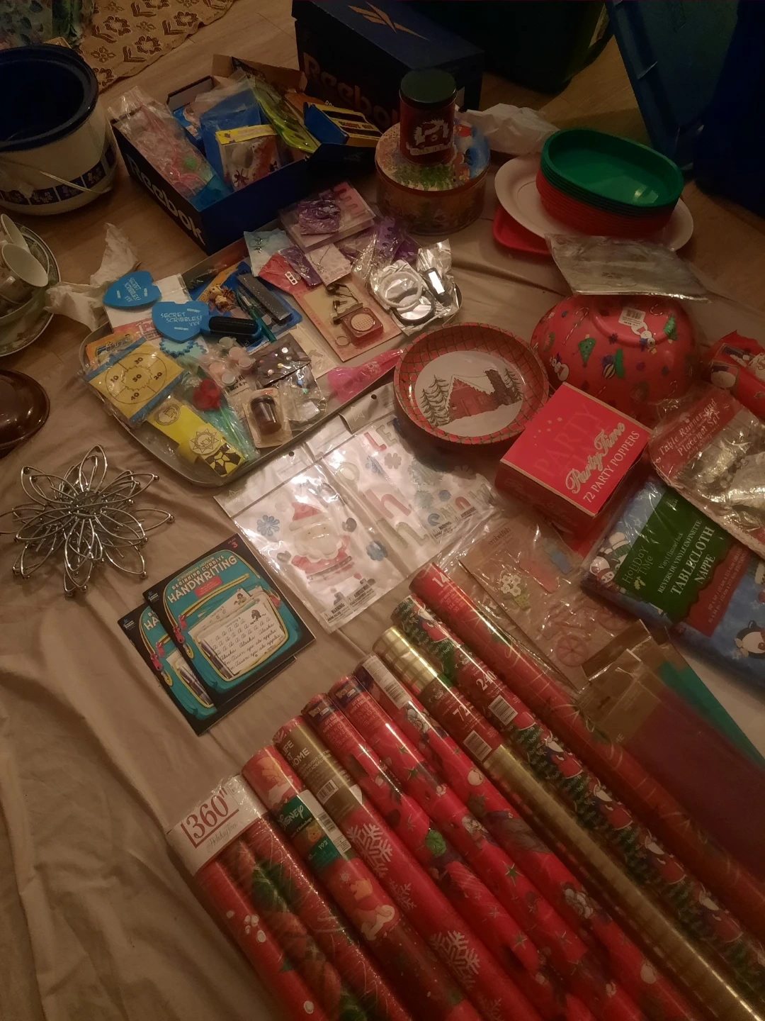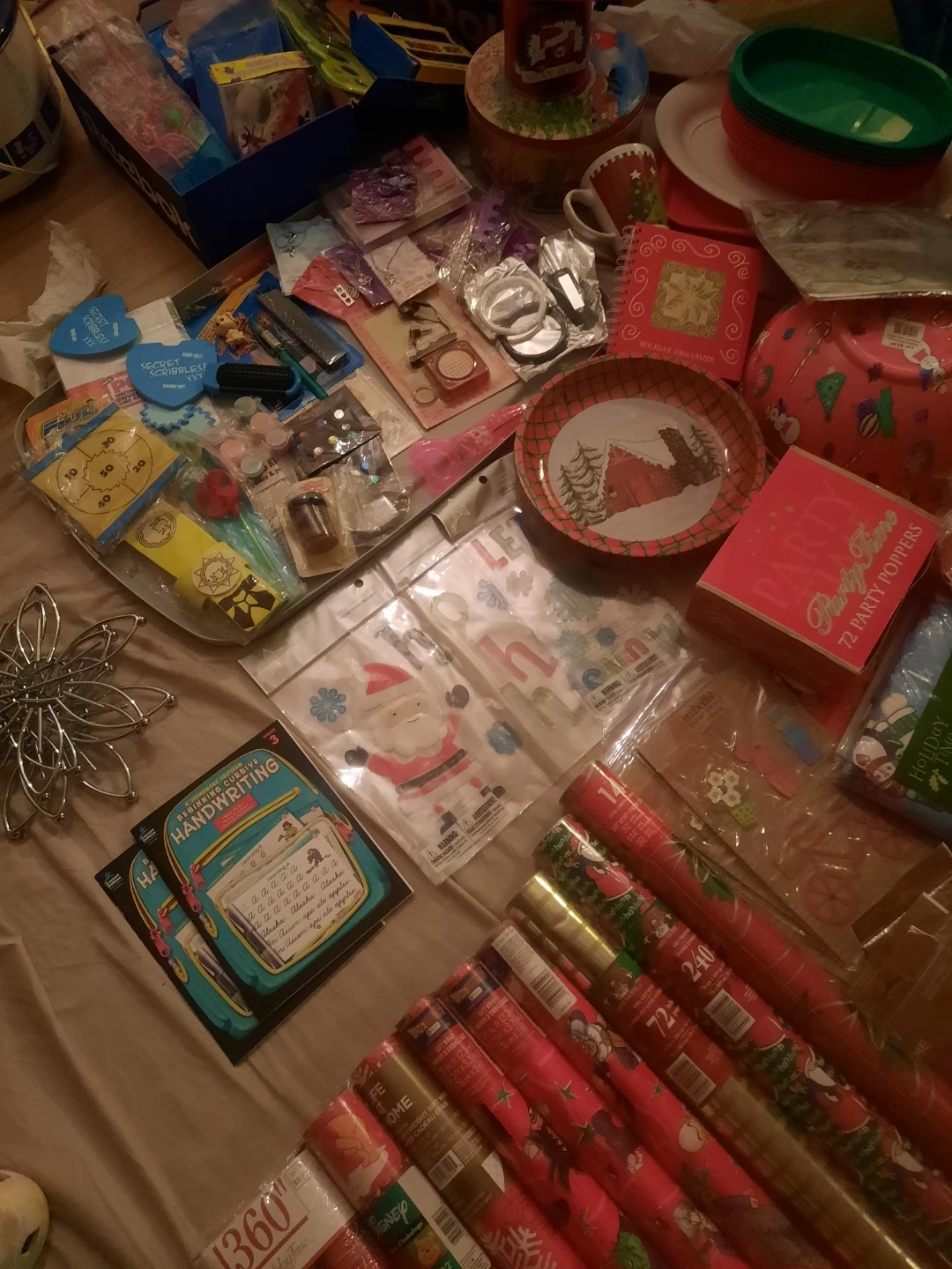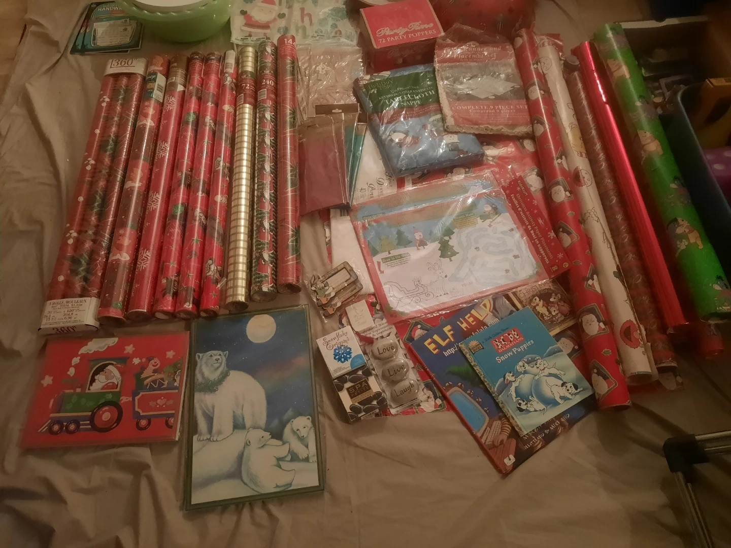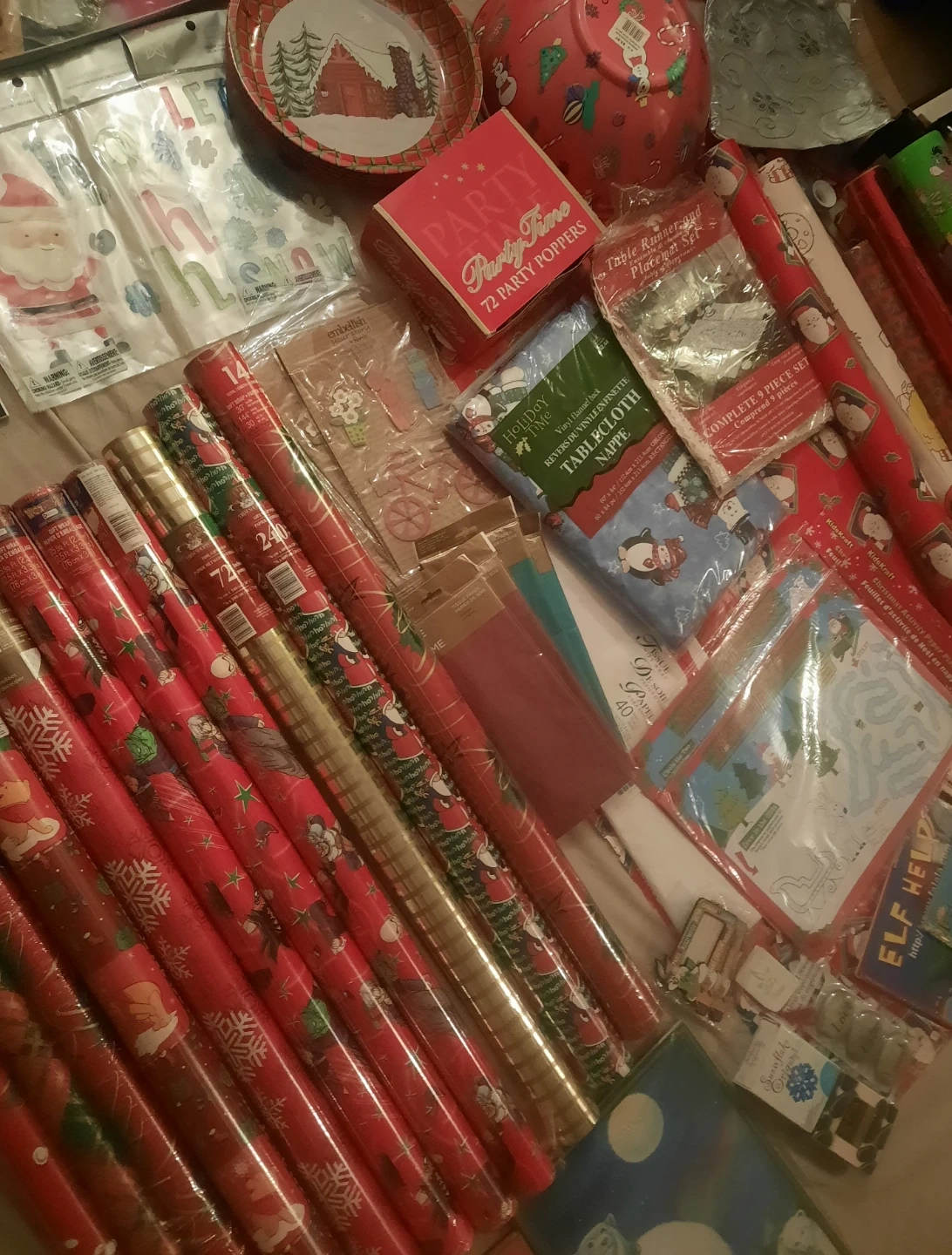 I Have a mixed lot of Christmas decorations and party supplies, including wrapping paper, tissue paper, plastic & metal plates, party poppers, christmas crackers and more! Majority Brand New...Christmas Tins/Plates gently used....Like New....Perfect for getting a head start on your holiday preparations. Take a look at the photos to see everything included.