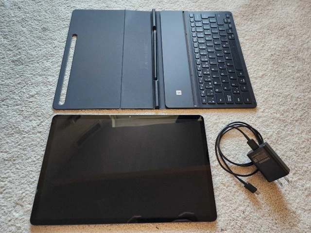 Works like new, comes with genuine Samsung keyboard cover. There are a few scratches that are hard to see in photos. It's not the newest, but it's still a premium, full-metal-built tablet. You can run/play virtually any apps/games. Perfect for media consumption. Upgraded, so selling this one. Price is firm, no offers. Serious buyers only, local pickup in Richmond Hill with cash only. Please read the ad and only contact when you are ready to buy.