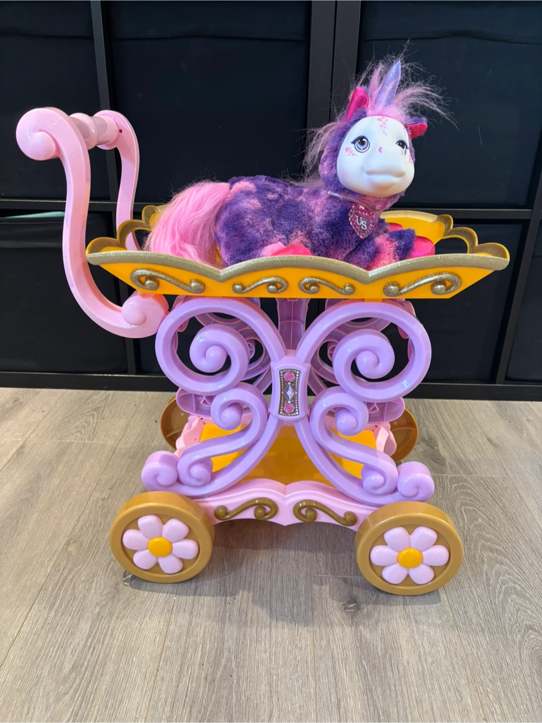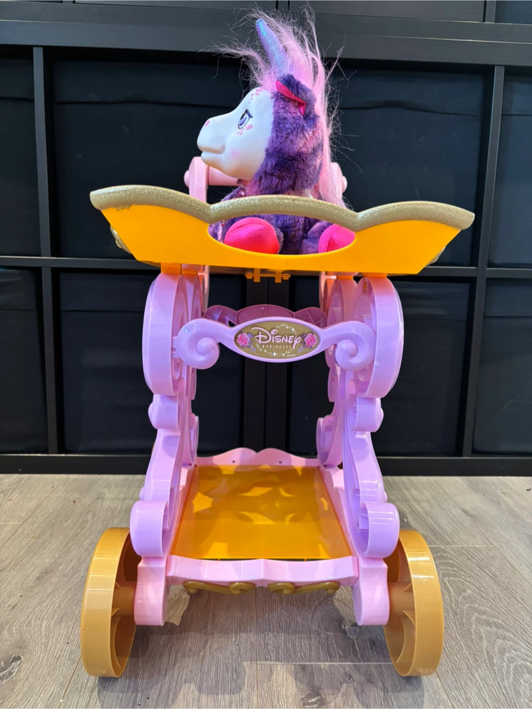 Selling a cute Disney Princess toy carriage! It's in great condition and perfect for your little one's imaginative play. It's a lovely pink and gold colour, ready for a new adventure