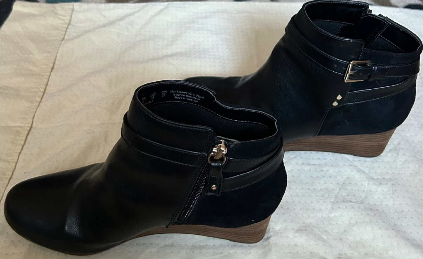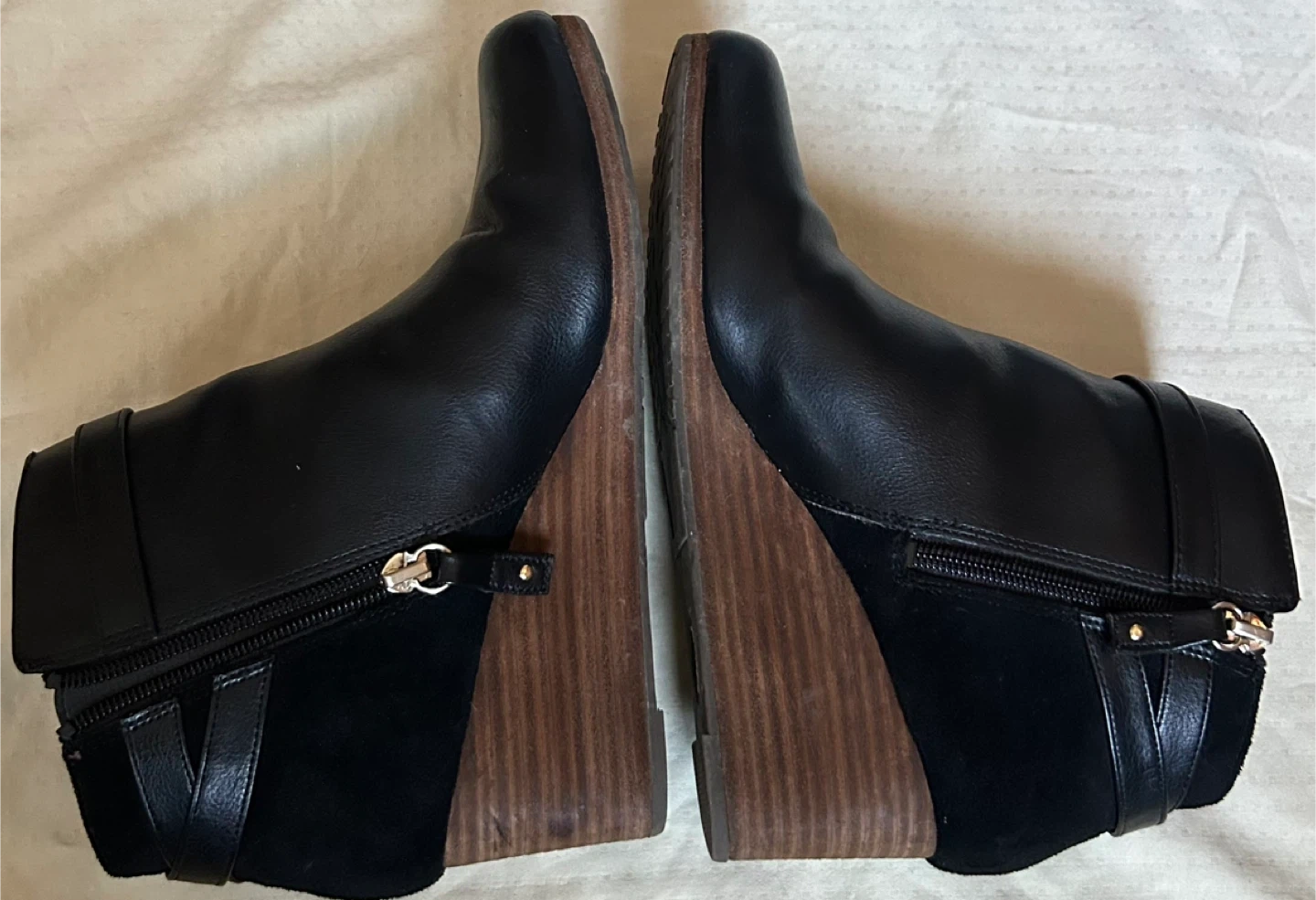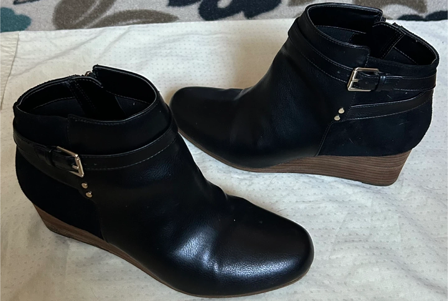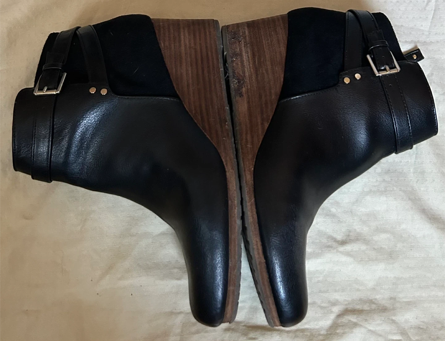 Selling a pair used Dr. Scholls memory foam cool fit women’s wedge booties. They are size 8. These stylish booties feature a comfortable wedge heel and a sleek design, perfect for adding a touch of sophistication to any outfit.