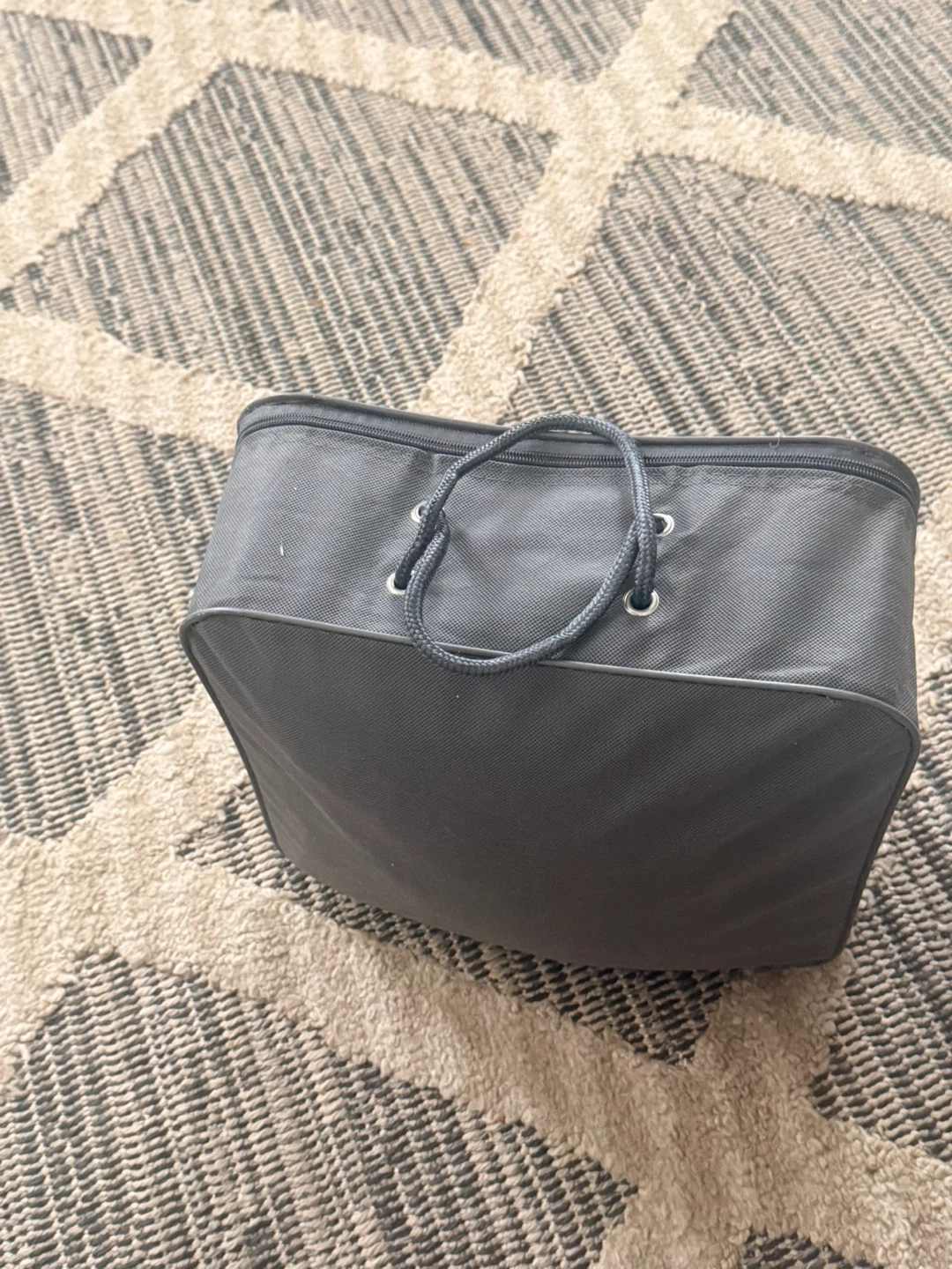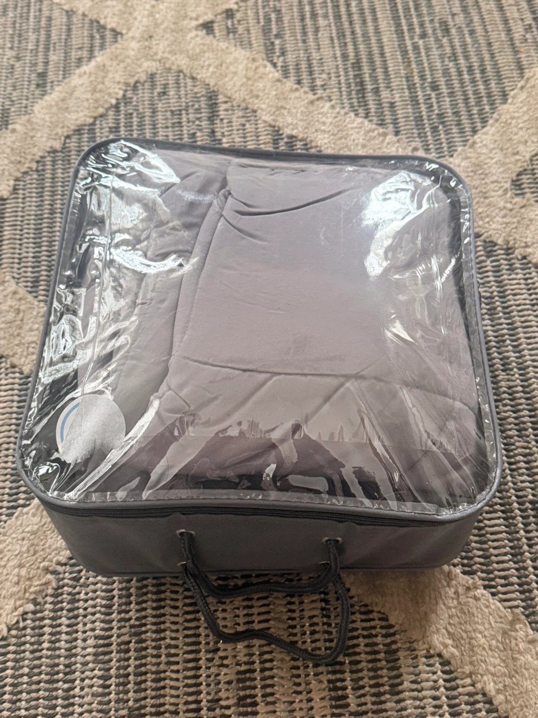 Selling a gray weighted blanket that's in great condition! It's approximately 48in x 72in. The shell is 100% polyester and the filling is 80% glass beads and 20% polyester fiber. It weighs 15lbs