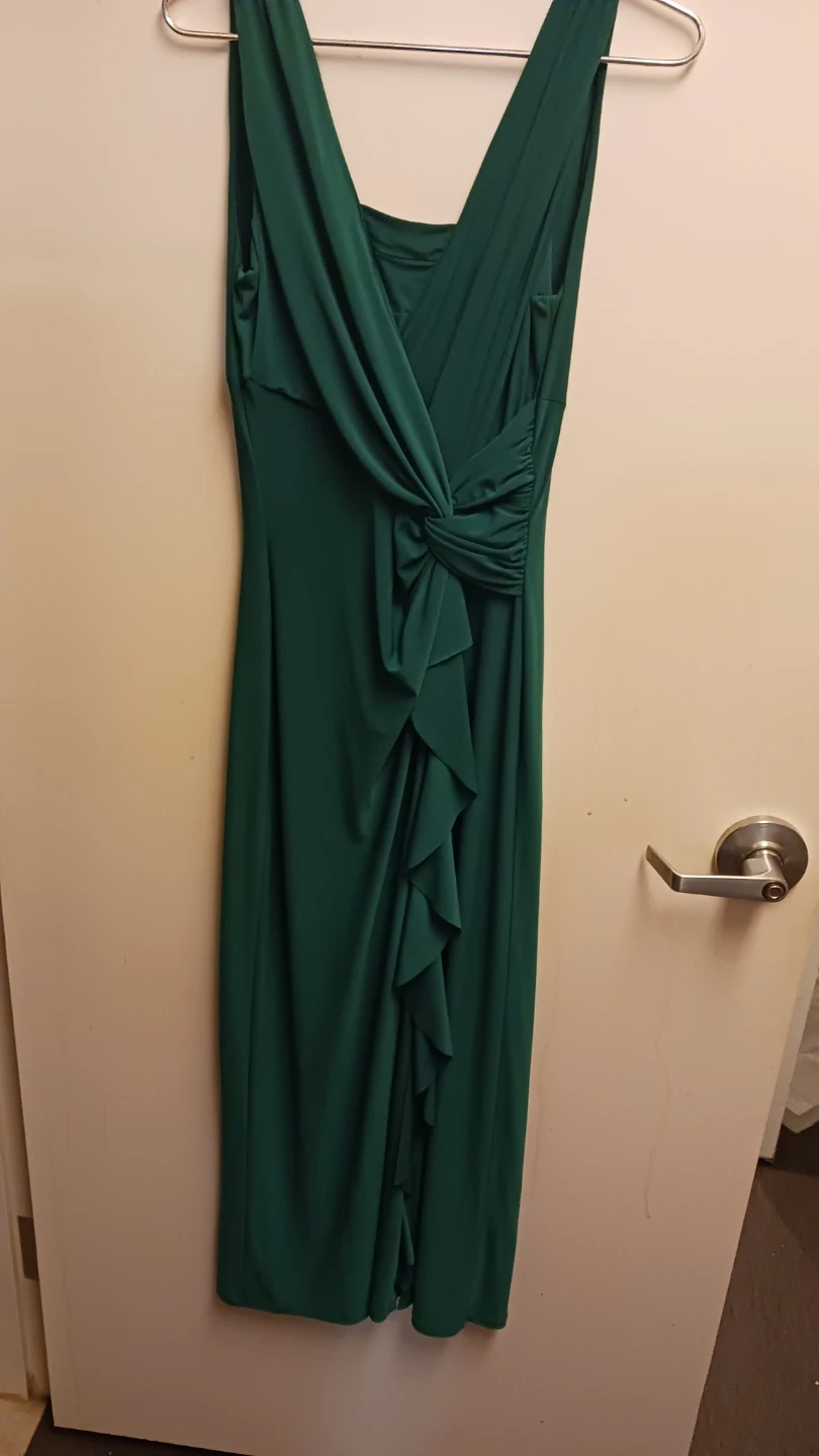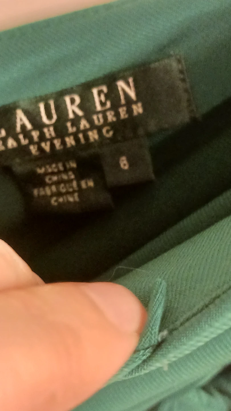 Selling a Ralph Lauren Evening dress in a beautiful green colour. It's a size 6 and in great condition! Perfect for a special occasion or a night out. Christmas comes to mind with this gorgeous colour! Jersey material but not super lightweight!
