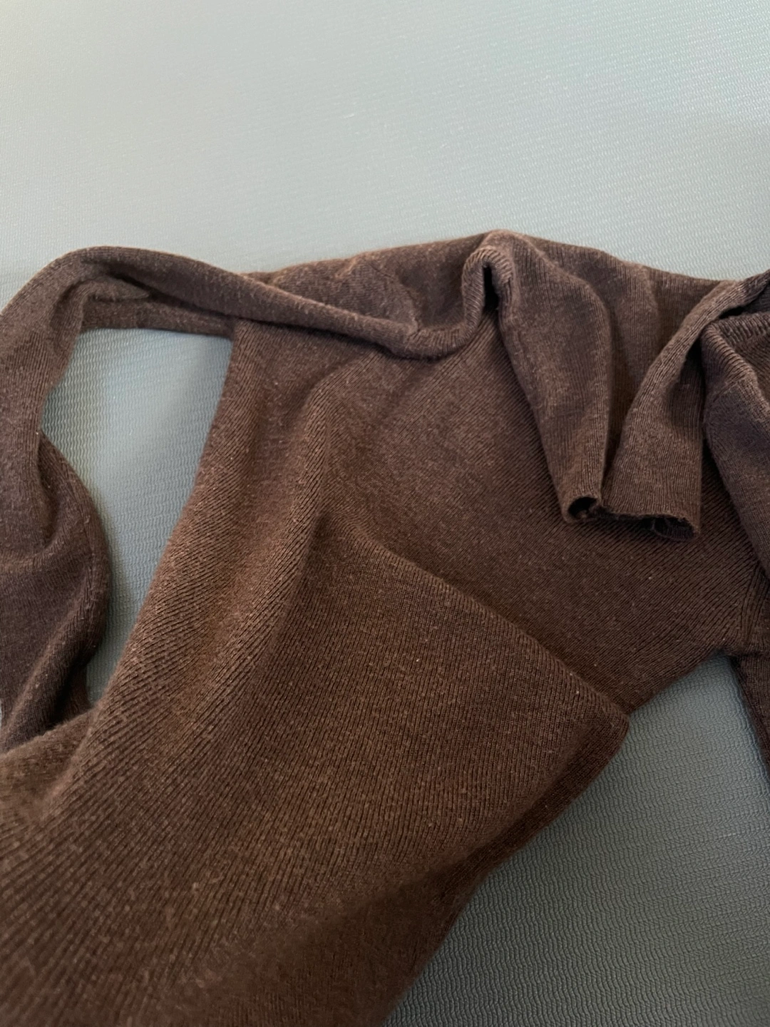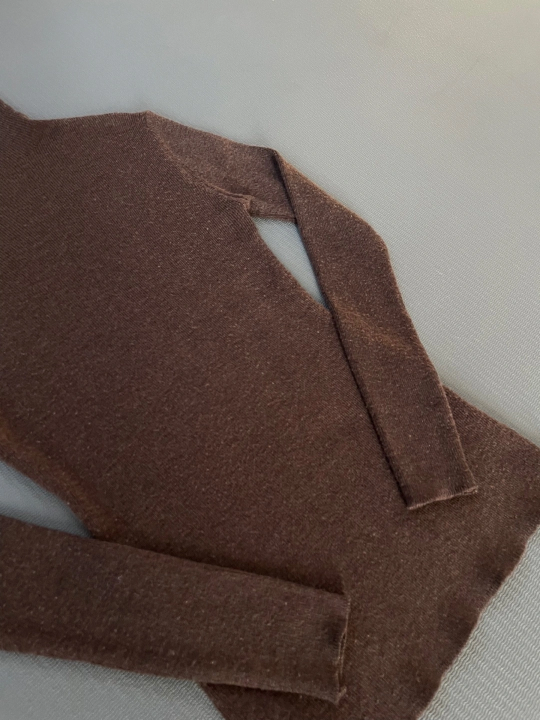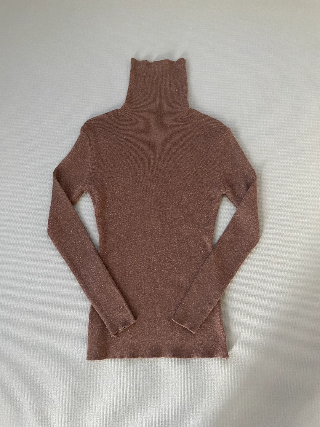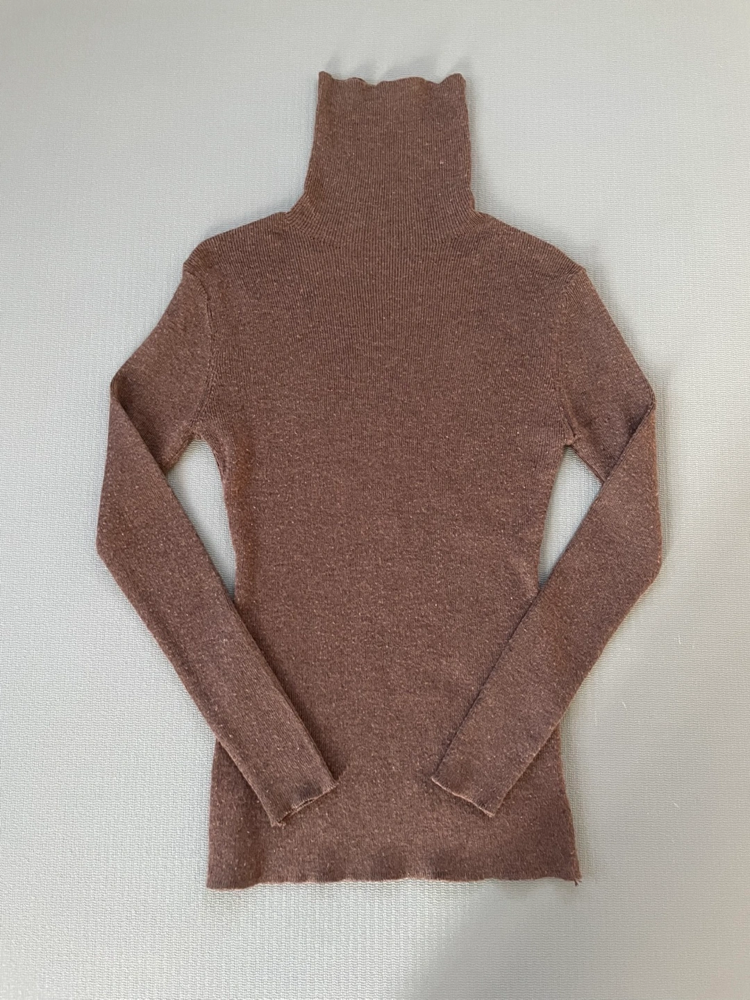 A cozy brown turtleneck sweater, perfect for layering! It's in great condition and ready to keep you warm this season