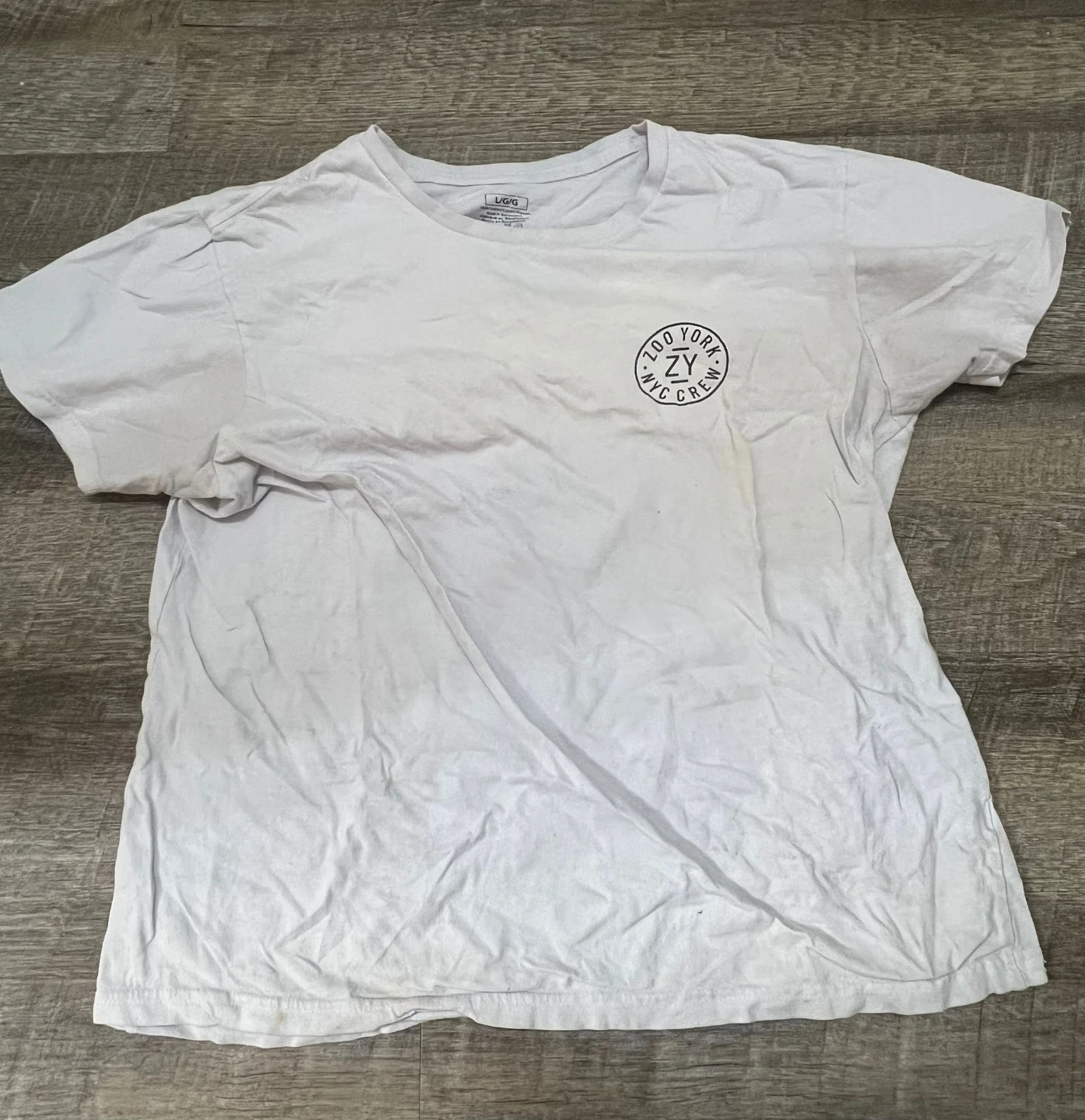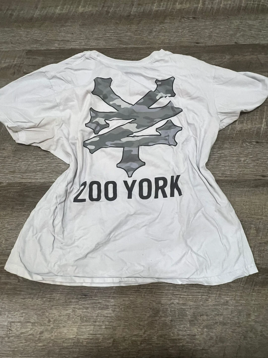 Zoo York NYC Crew T-shirt in size L. It's white with the Zoo York logo on the front and a larger design on the back. Great for casual wear!