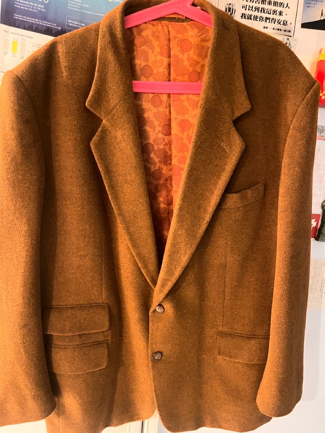 Here's a Campagne Kaid Country blazer in a lovely brown colour! The inside lining has a beautiful orange paisley pattern.