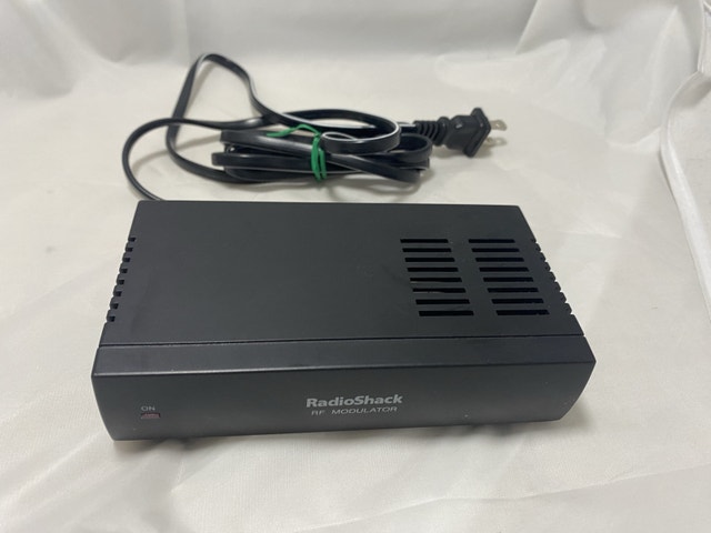 Radio Shack RF Modulator #15-1244 is a versatile unit designed for universal compatibility, allowing for channel 3 or 4 output selection with a switchable impedance of 75/1K ohms. This model 10A01 is an essential accessory for your home audio and video setup, ensuring a clear and reliable connection. The modulator comes in a sleek black color, maintaining a standard cable length for easy integration into your existing system. It's a single-unit, powered device that offers a 1:5 connection split/duplication feature without the need for custom bundles or modifications. Embrace the simplicity of this universal RF modulator in your tech toolkit.