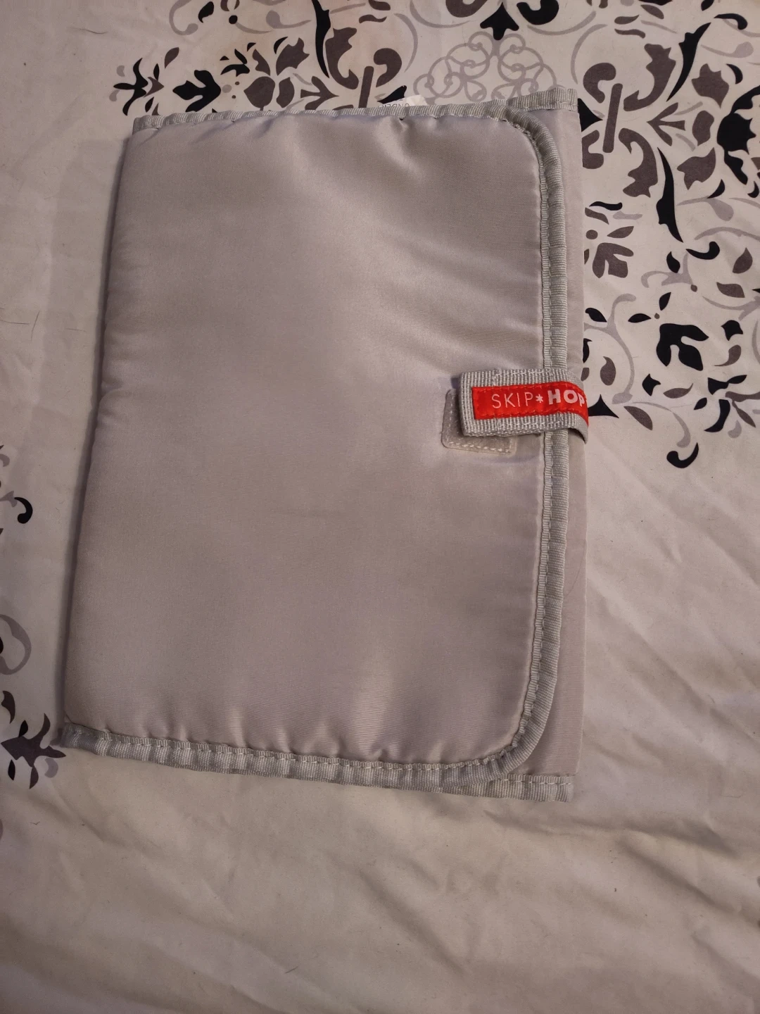 a Skip Hop portable changing pad in grey! It's in great condition and perfect for diaper changes on the go. It's lightweight and easy to clean, making it a must-have for parents