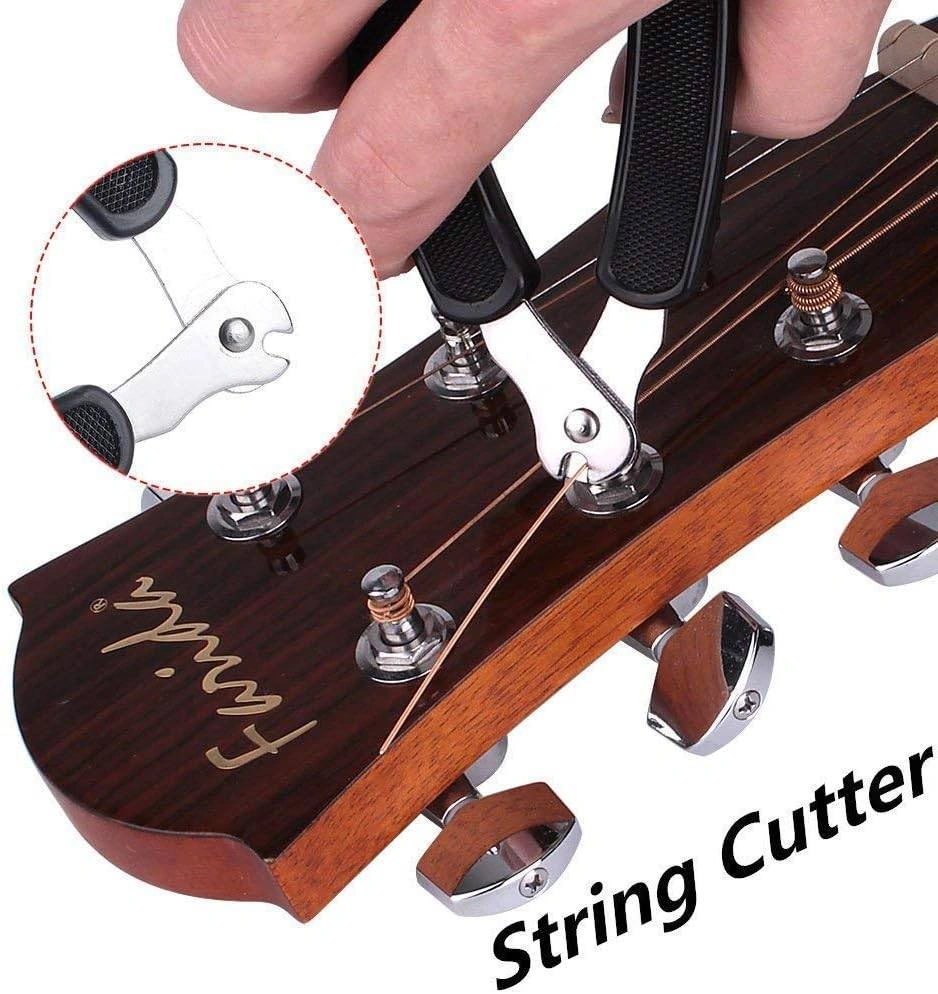 3-in-1 String winder, String cutter, and Guitar String Pin Puller. It makes you change the guitar strings quickly and easily.