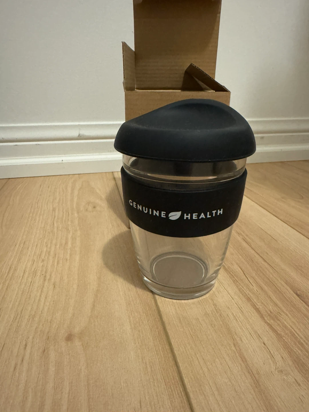Unused! Comes with a black silicone lid and sleeve. Great for hot or cold drinks on the go. It also comes with the original box!