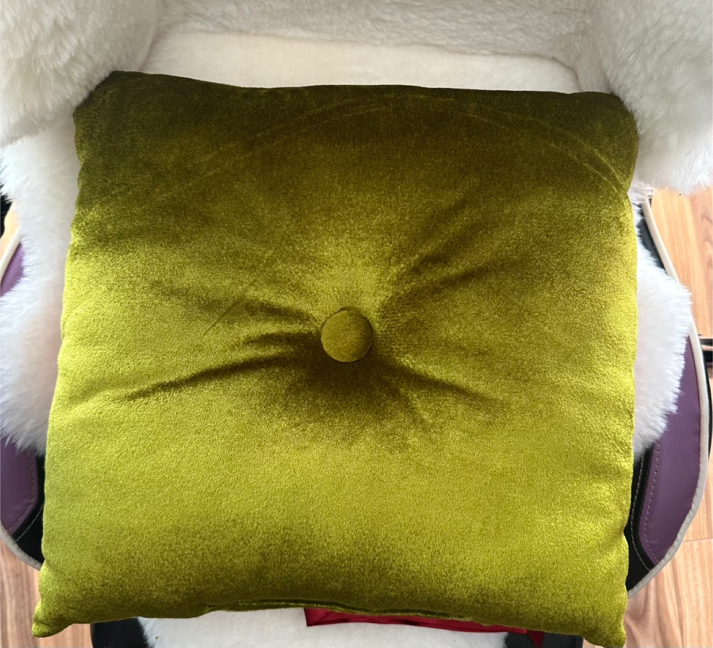 Green Velvet Pillow with Red Bow