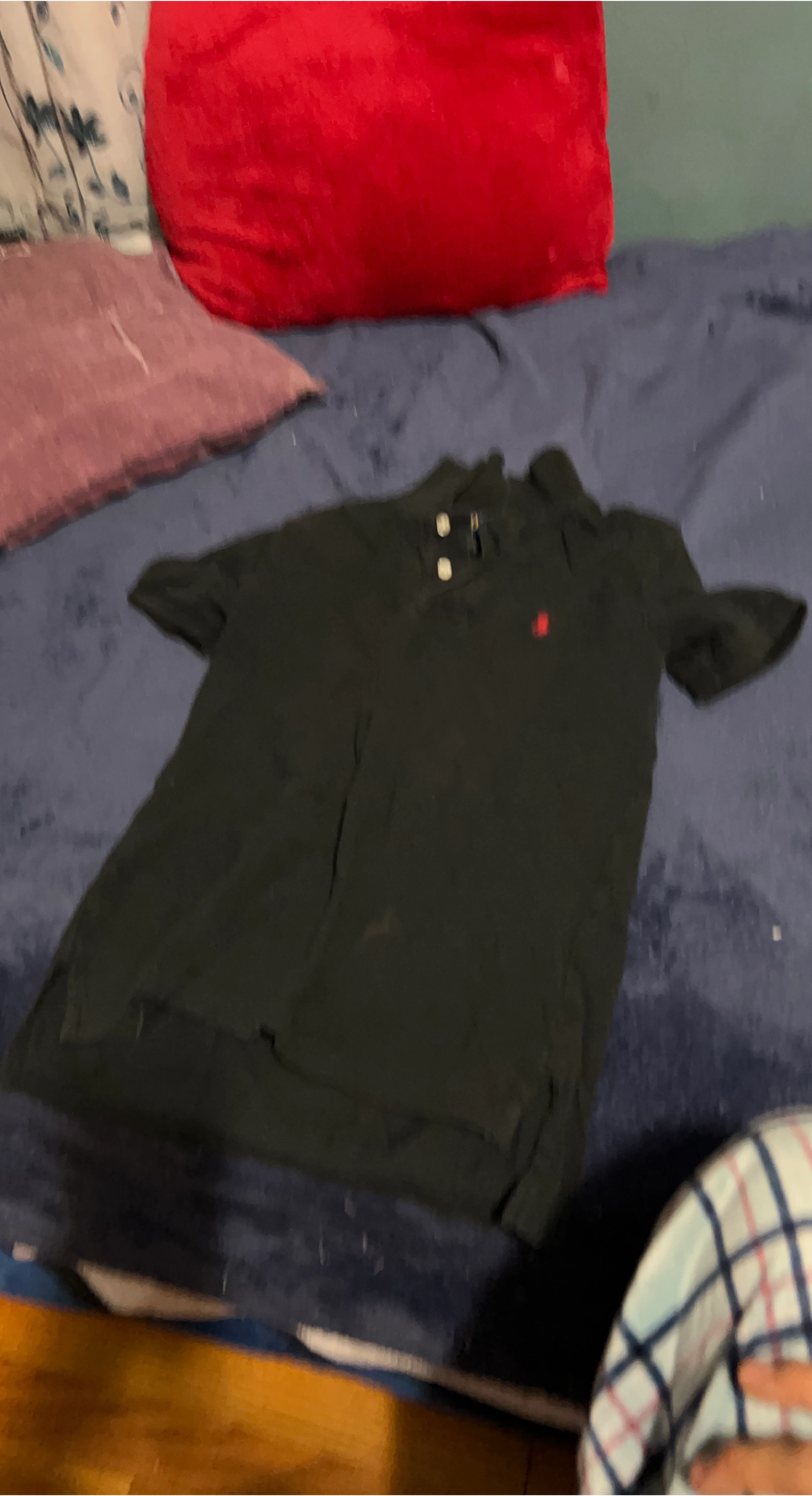 Selling a black Ralph Lauren polo shirt. It has the classic polo design with the small logo on the chest. It's in good condition and ready for a new owner!