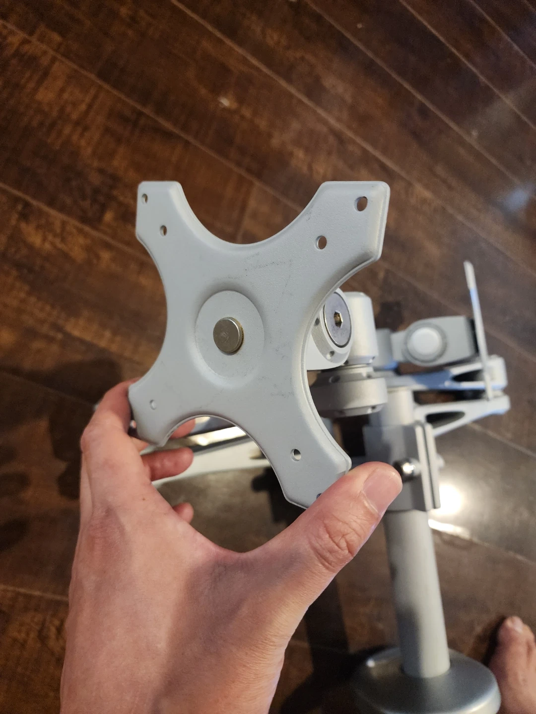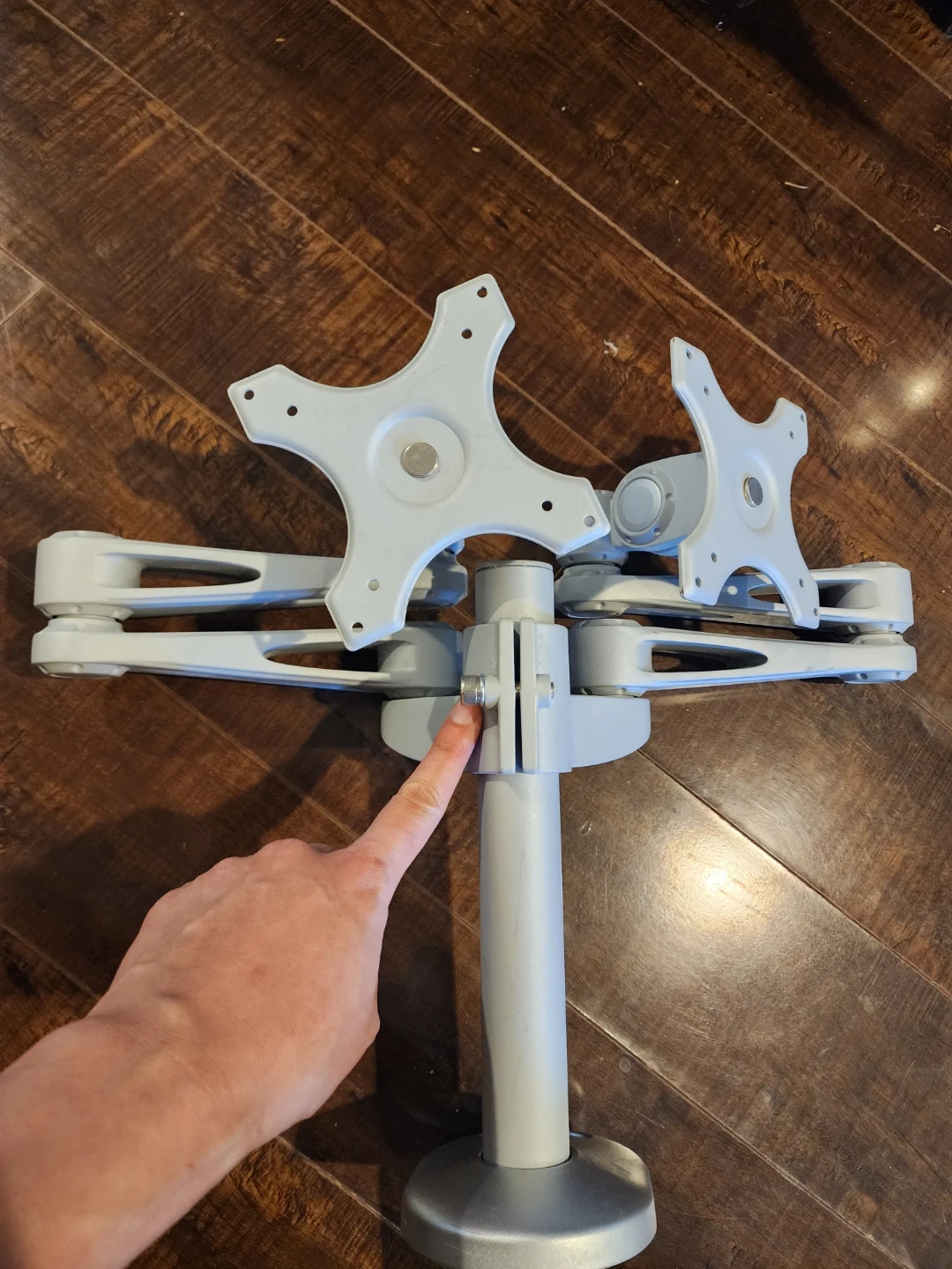 Selling a dual monitor desk mount stand. It's in great shape and ready to help you organize your workspace. Perfect for anyone looking to free up desk space and improve ergonomics!