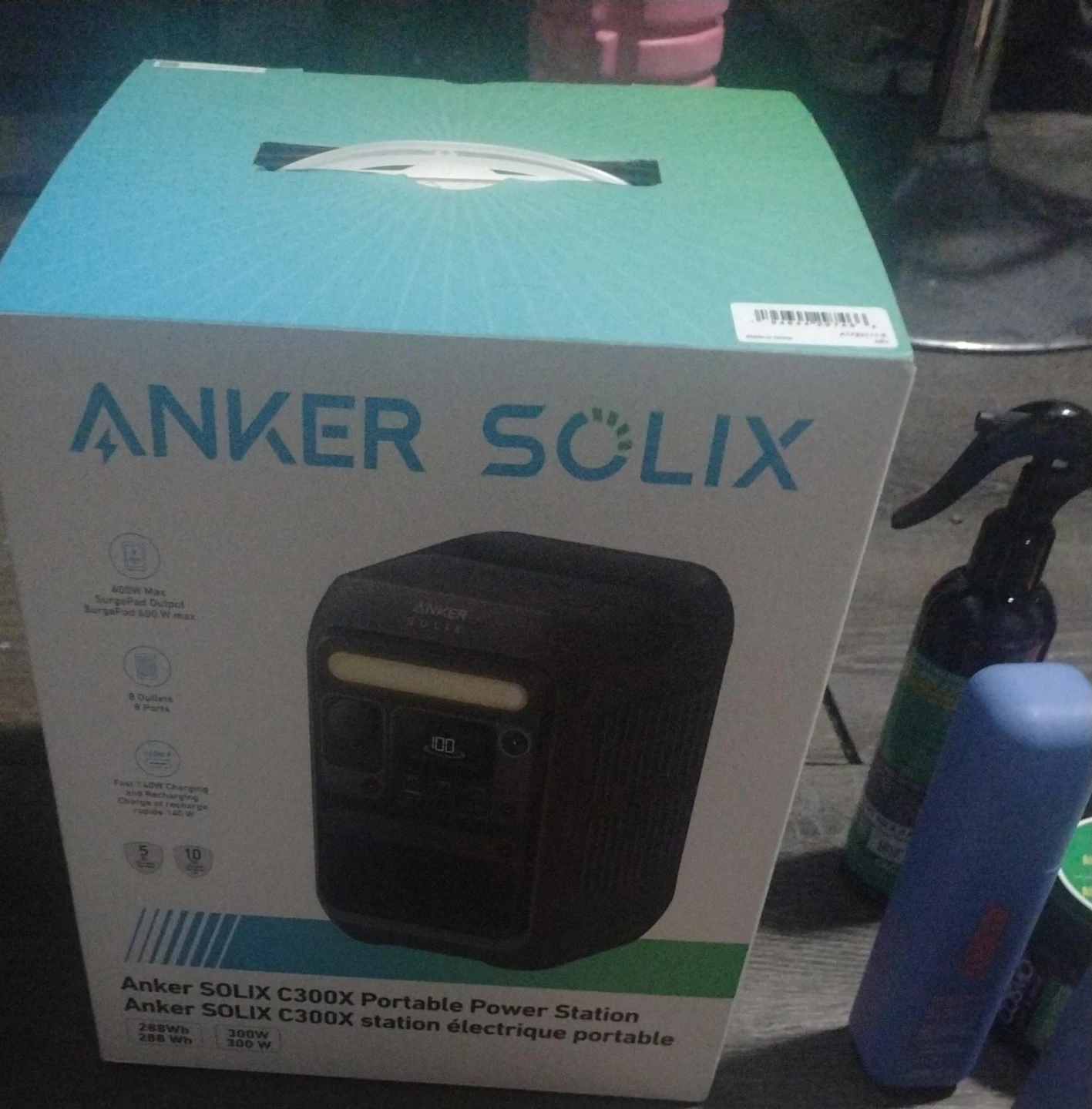 Selling an Anker SOLIX C300X Portable Power Station. It features 8 outlets and ports, and fast TLOW charging and recharging. It has a 300W output and 288Wh capacity. The box is included