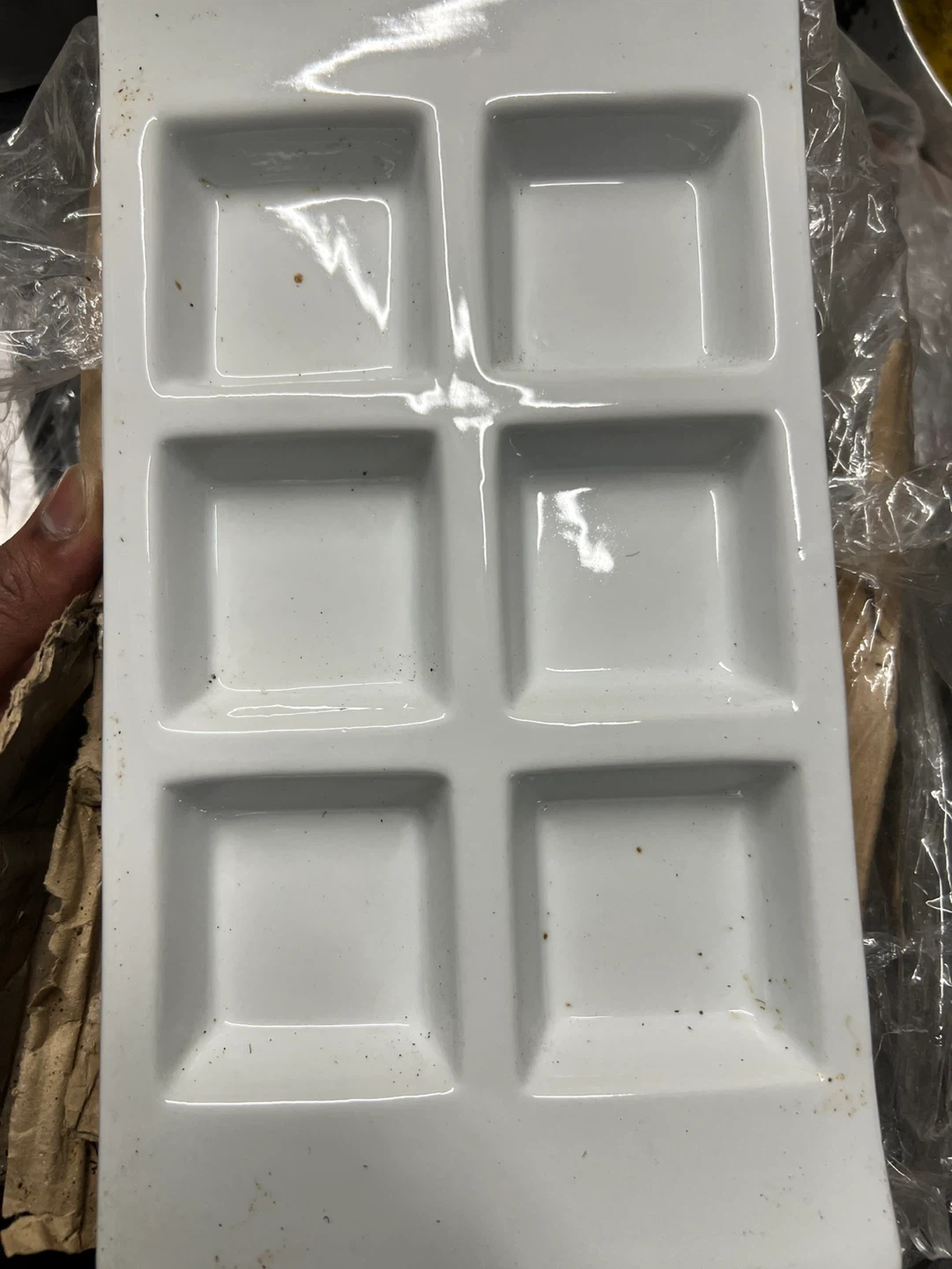 Selling a white ceramic tray with six compartments. It's perfect for organizing small items or serving snacks. Great for use in arts and crafts or for serving dips! I have 4 pcs left