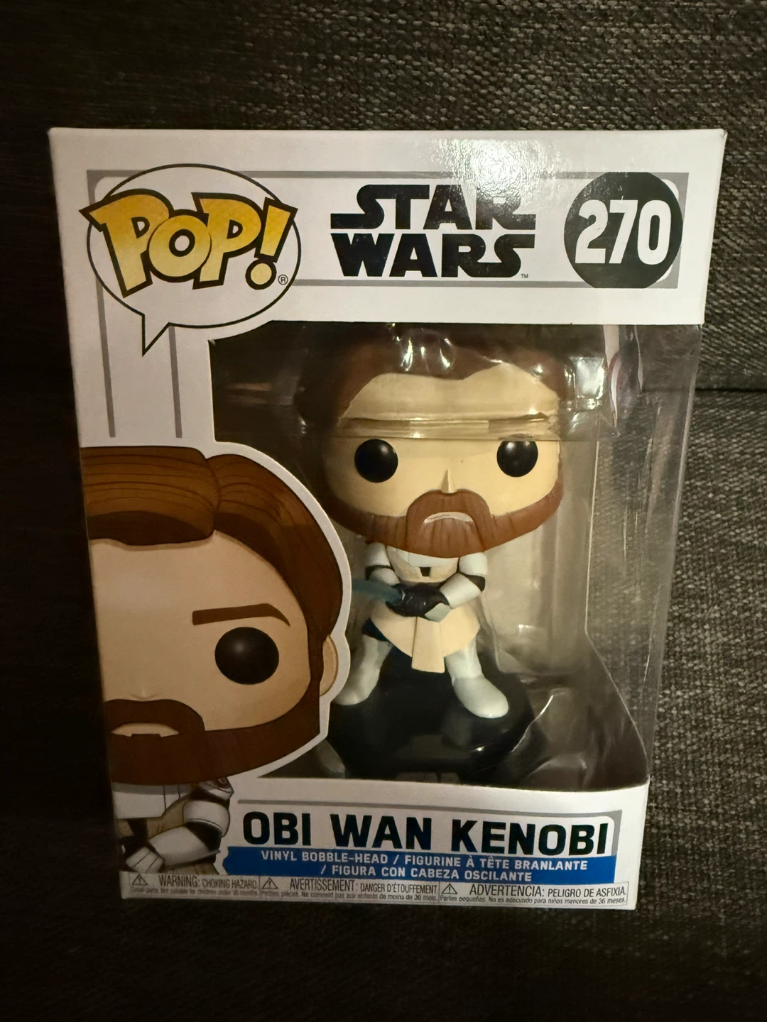 Selling a Funko Pop! Star Wars Obi Wan Kenobi figure, number 270. It's a vinyl bobble-head and comes in its original box. A great addition to any Star Wars collection!