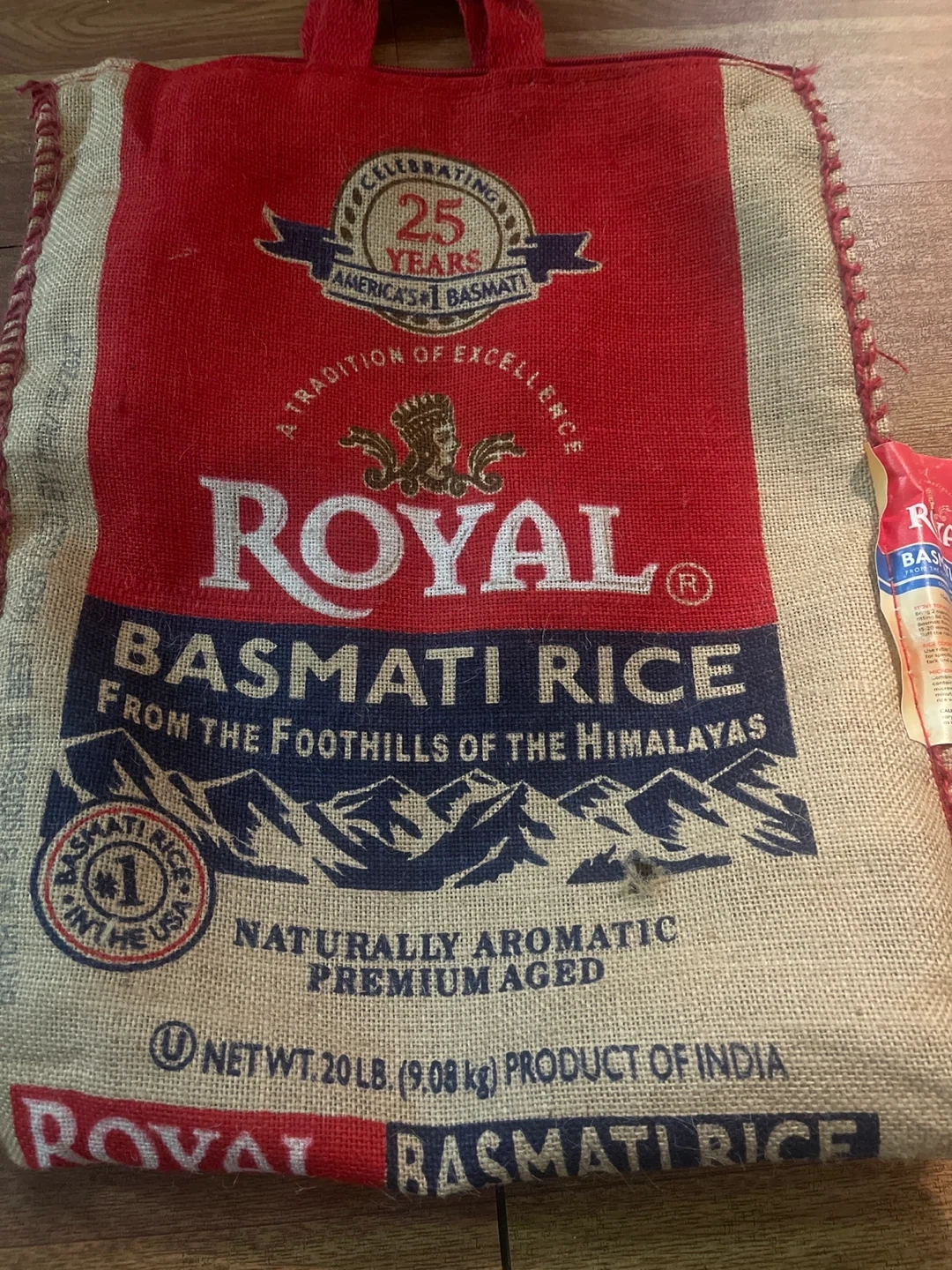 Selling a 20 lb bag of Royal Basmati Rice. It's naturally aromatic and premium aged, sourced from the foothills of the Himalayas. A tradition of excellence!