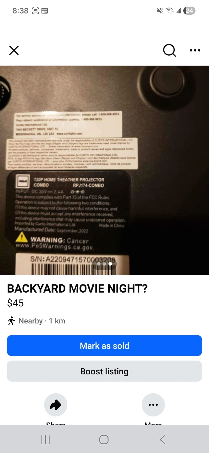 1 / 31 / 3Buy & SellRCA RPJ174-COMBO 720P Home Theatre ProjectorRCA RPJ174-COMBO 720P Home Theatre Projector$40Selling an RCA 720P Home Theatre Projector. The model number is RPJ174-COMBO. Manufactured Date: September 2022BrandRCAWHERE TO MEETBrampton downtown train stationView MapSELLERverifiedJaimeDowntown Brampton1255 reviews1 chatsยท1 favoritesยท12 viewsSEND CHAT TO SELLERHi Jaime! Iโm interested in your listing.Hi Jaime! Iโm interested in your listing.Get the Karrot app to chatSign In to chat