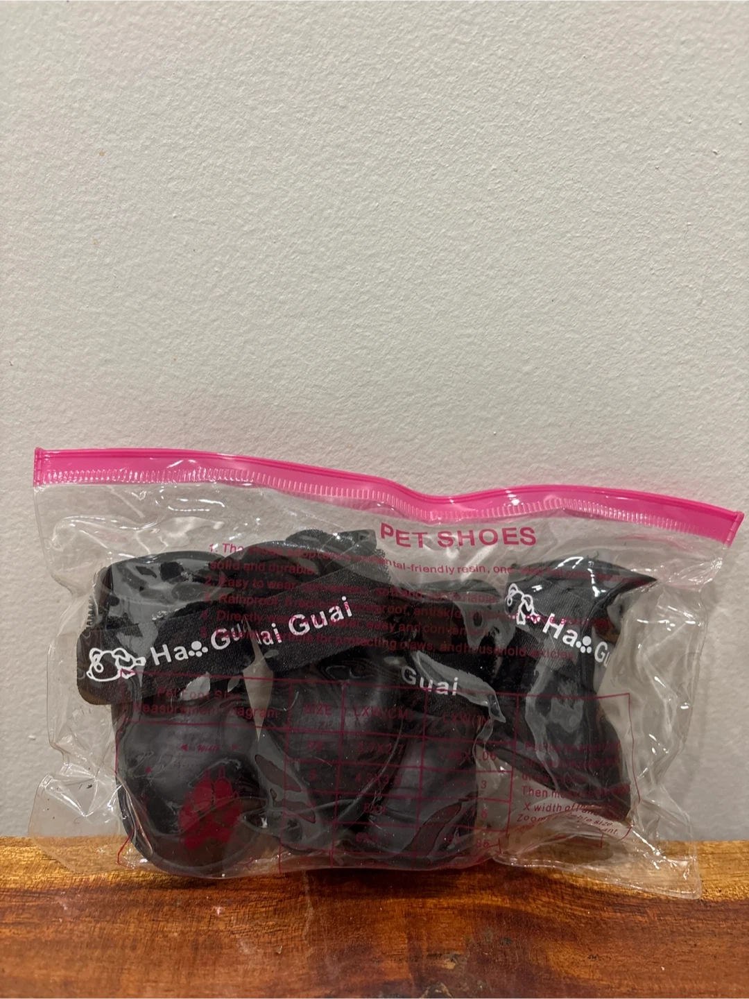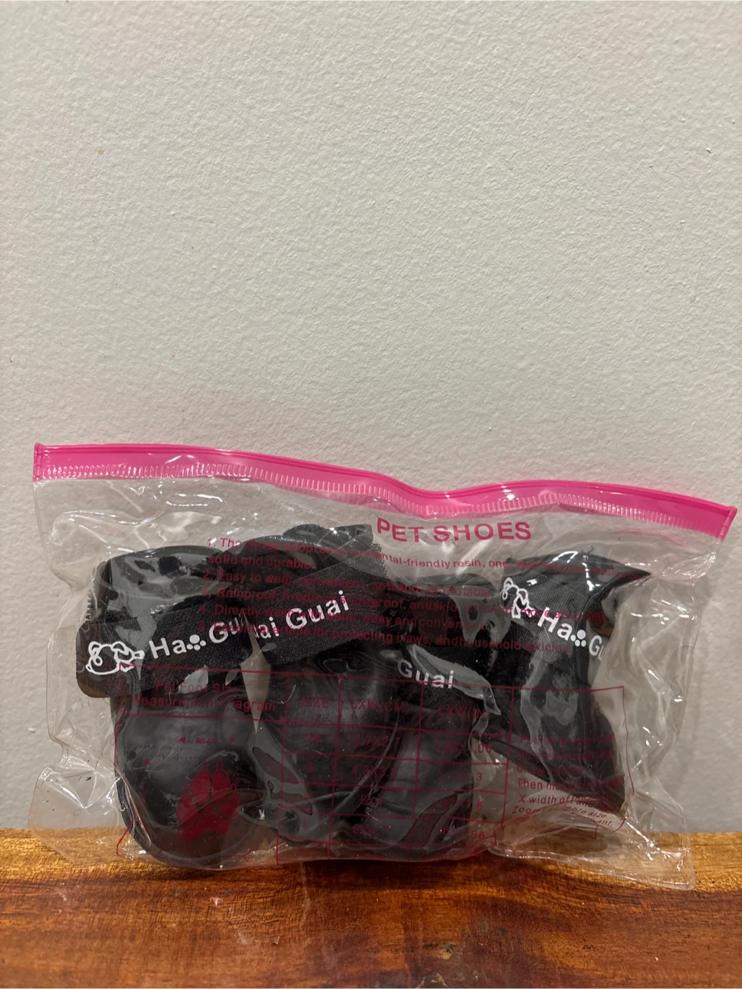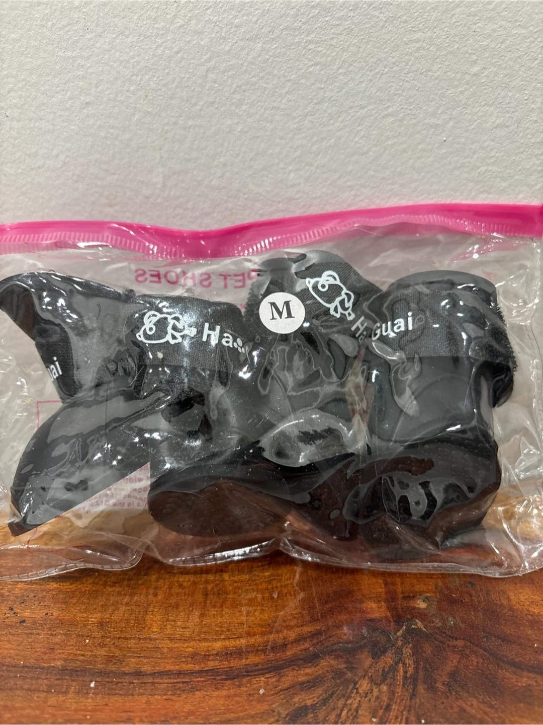 These HaGuai pet shoes are brand new and still in their original packaging! They're size M and perfect for keeping your furry friend's paws clean and protected on walks. They're black with a cute paw print design.