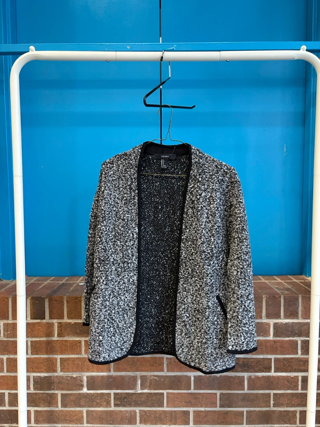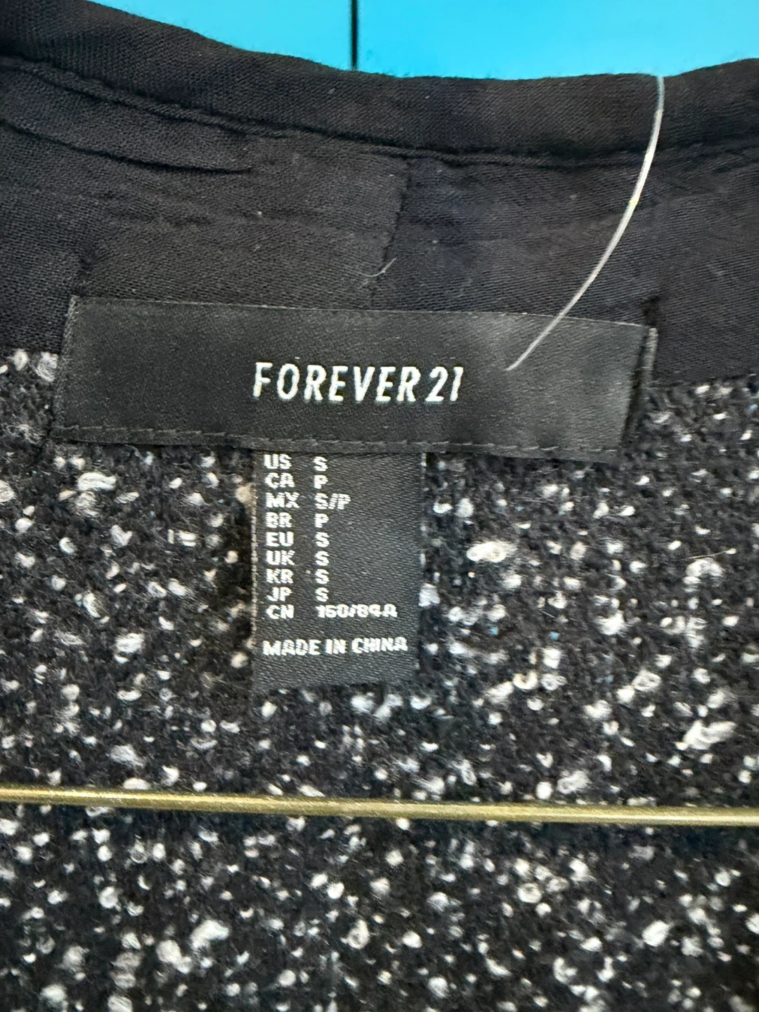 Here's a cute cardigan from Forever 21! It's a size small and features a black and white speckled pattern. Perfect for layering!