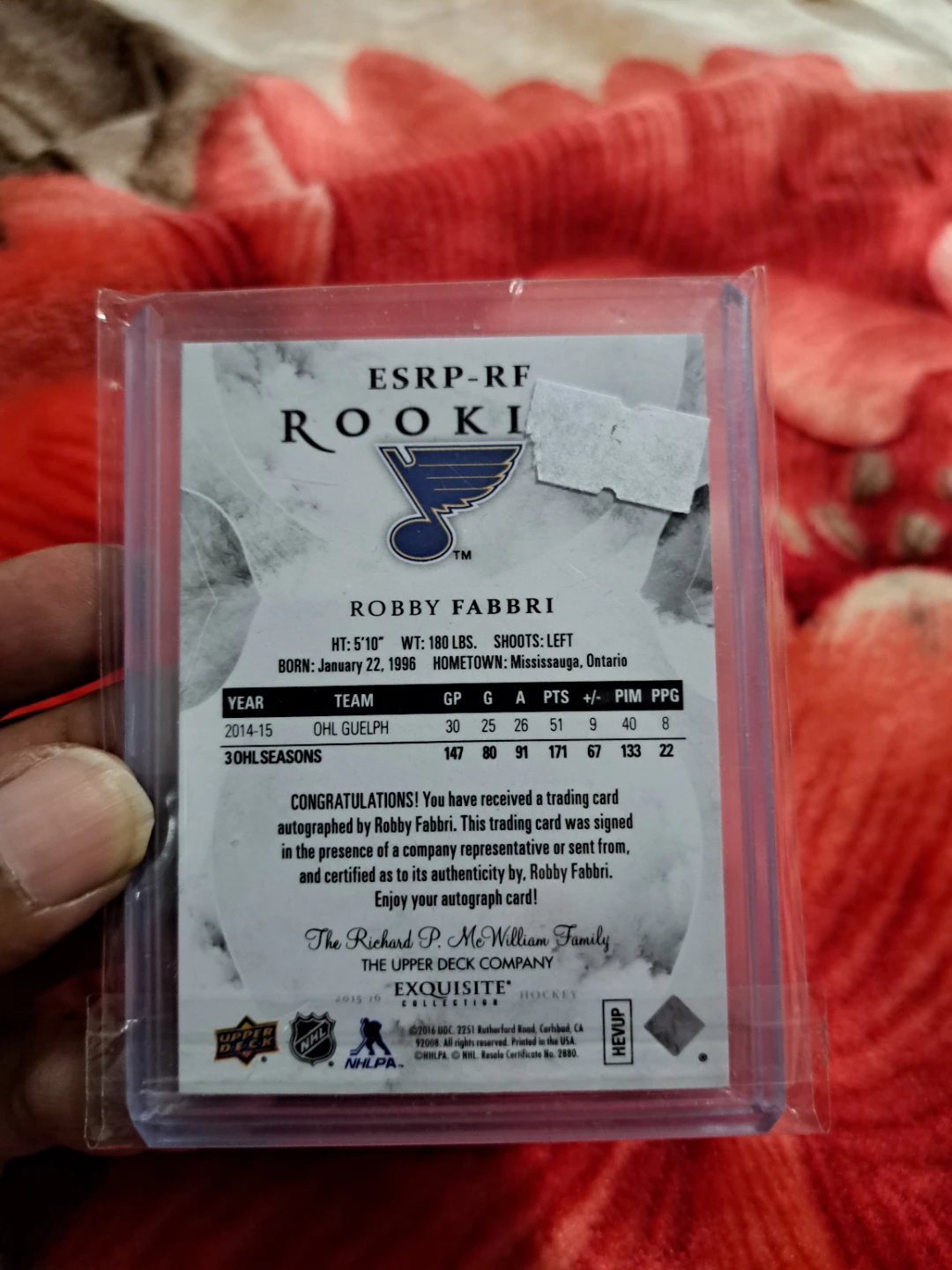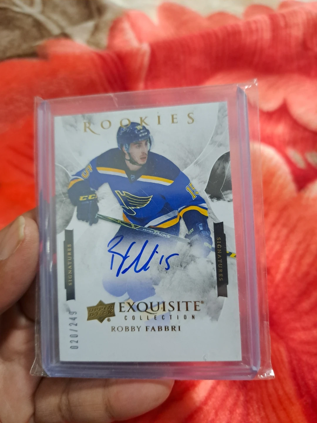 Selling a Robby Fabbri Upper Deck Exquisite Collection Rookie Signature card. It's in great condition and comes in a protective case. A fantastic collectible for any hockey fan!