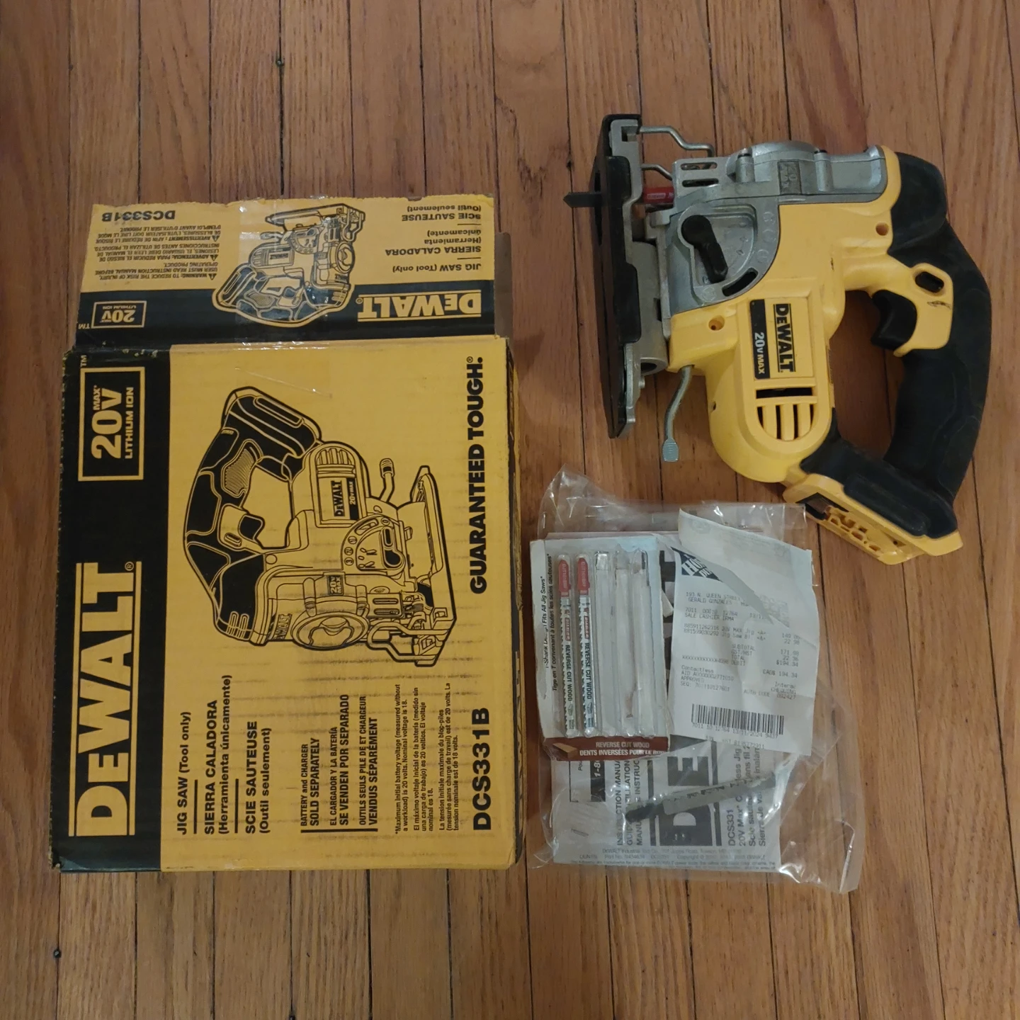 Selling a DeWalt 20V Max cordless jig saw, model DCS331B! It comes with the box and some jigsaw blades. Note that the battery and charger are sold separately. This tool is part of the DeWalt 20V Max system. Used just few times. Less than 50 hours probably. Bought in November 2024.
