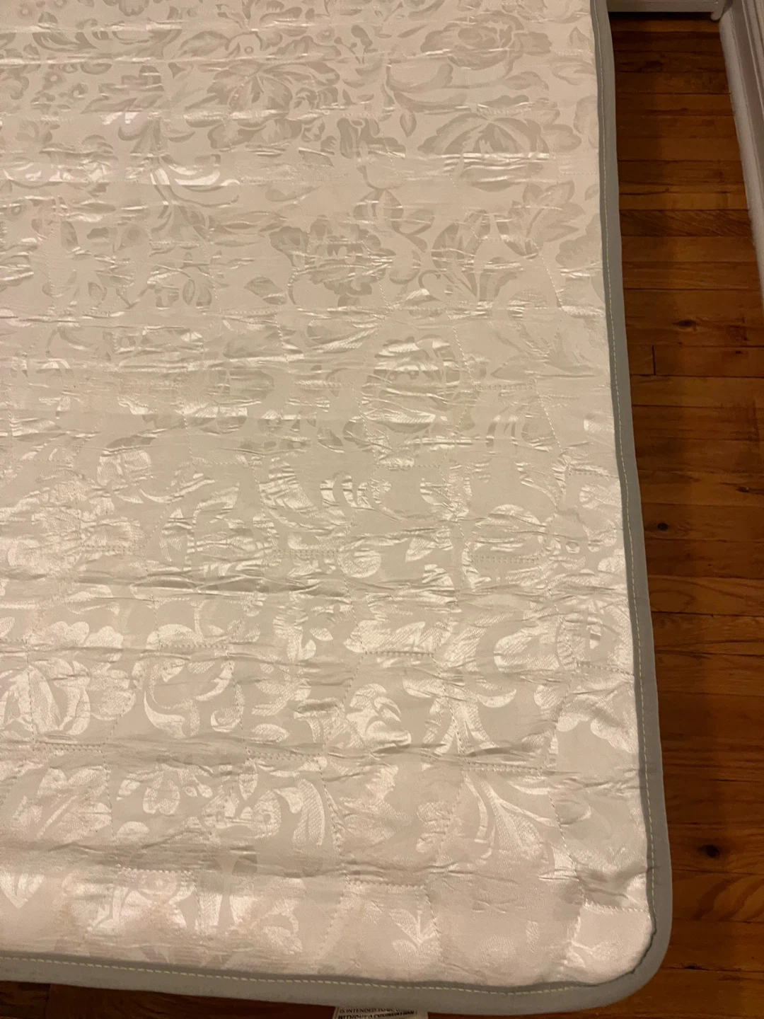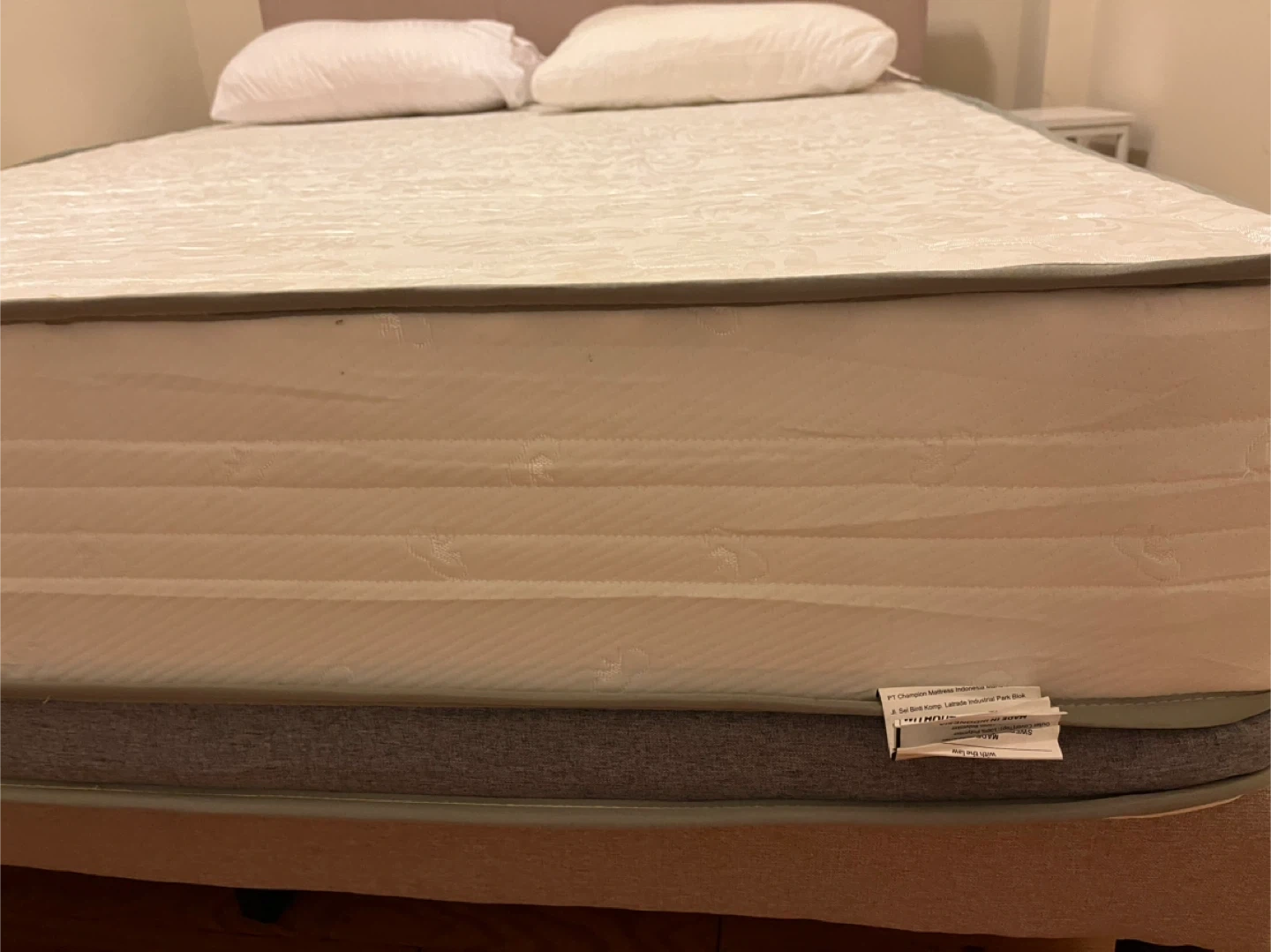 Selling a queen size mattress. The label reads Lavender Industrial Park Blue. It's in great condition and ready for a new home!