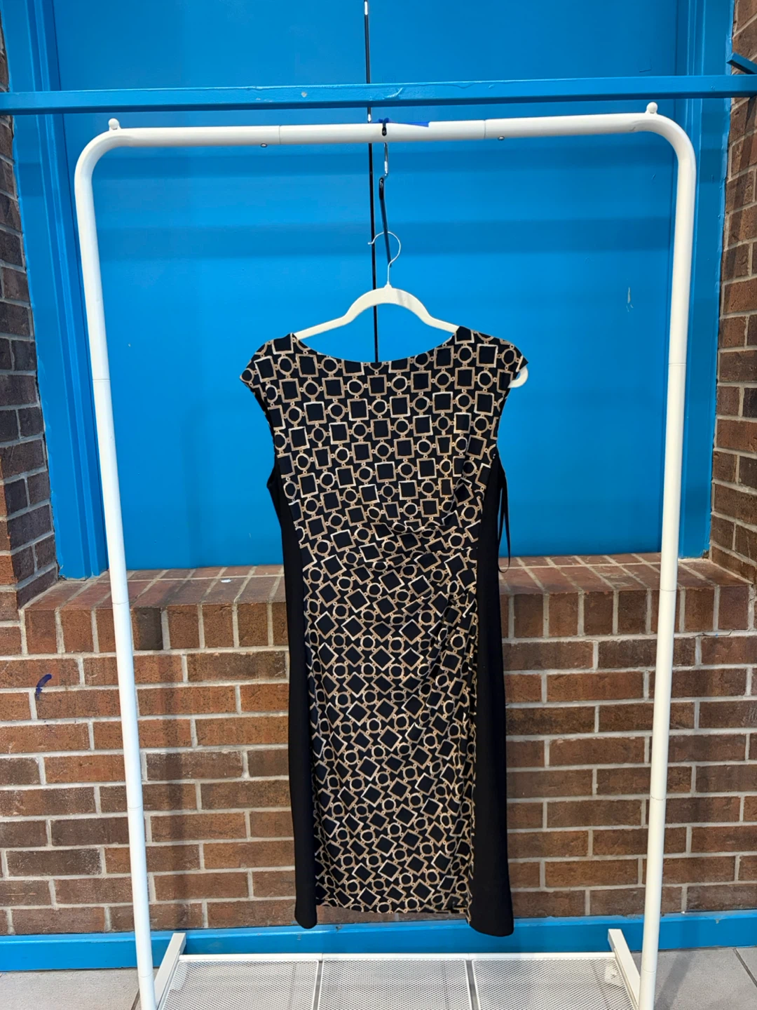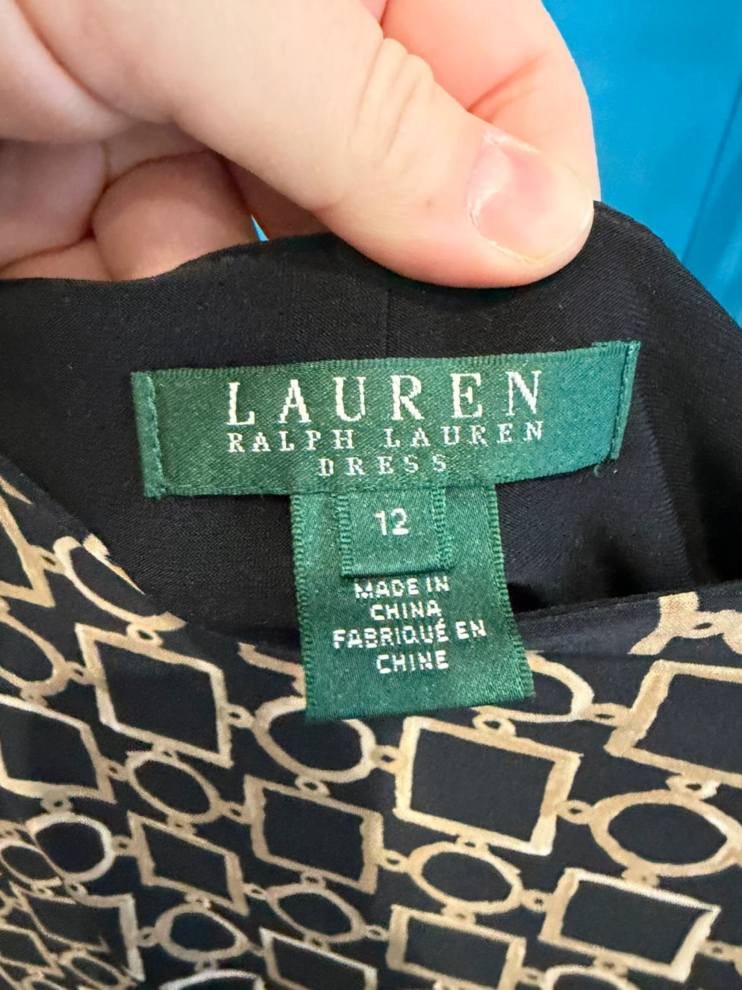 Selling a Ralph Lauren dress in size 12. It features a black and gold geometric pattern. Perfect for any occasion!