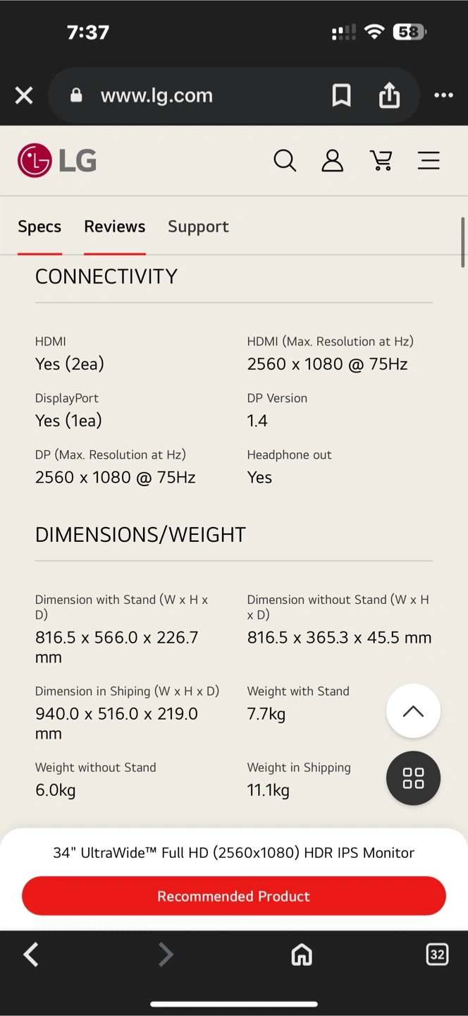 34” UltraWide FHD (2560 x 1080) IPS Display.Specific uses for product - Business, personal